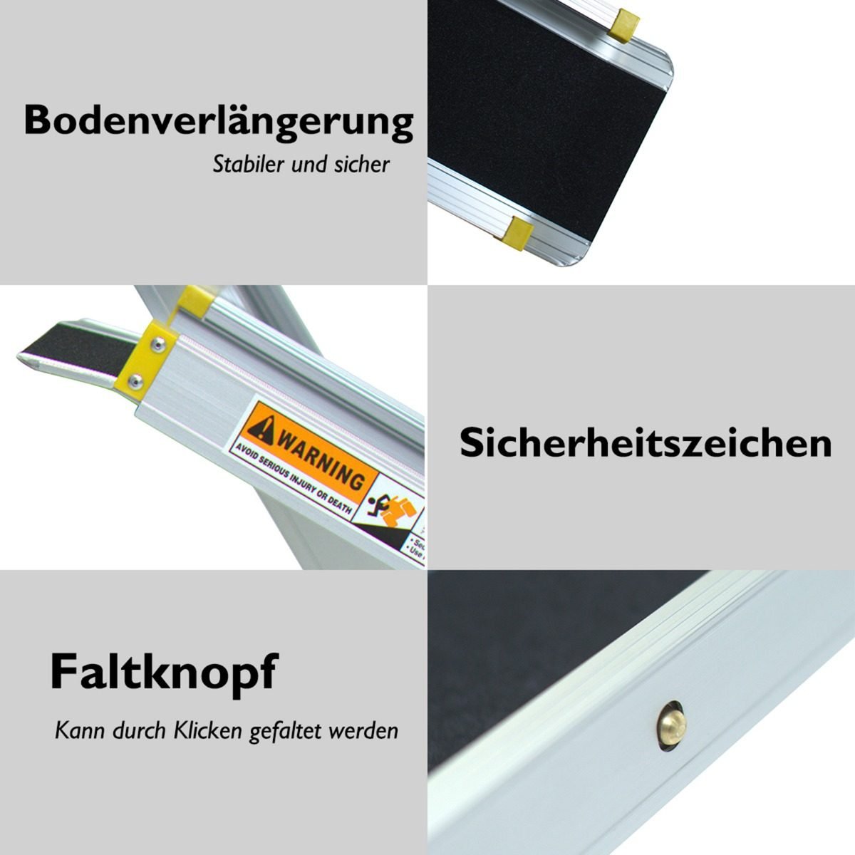 Ši tvirta, nešiojama ir lengva rampų pora idealiai tinka greitam ir saugiam transporto priemonių ar statybinės technikos krovimui. Naudokite jas laiptams ar kitiems nelygumams įveikti.