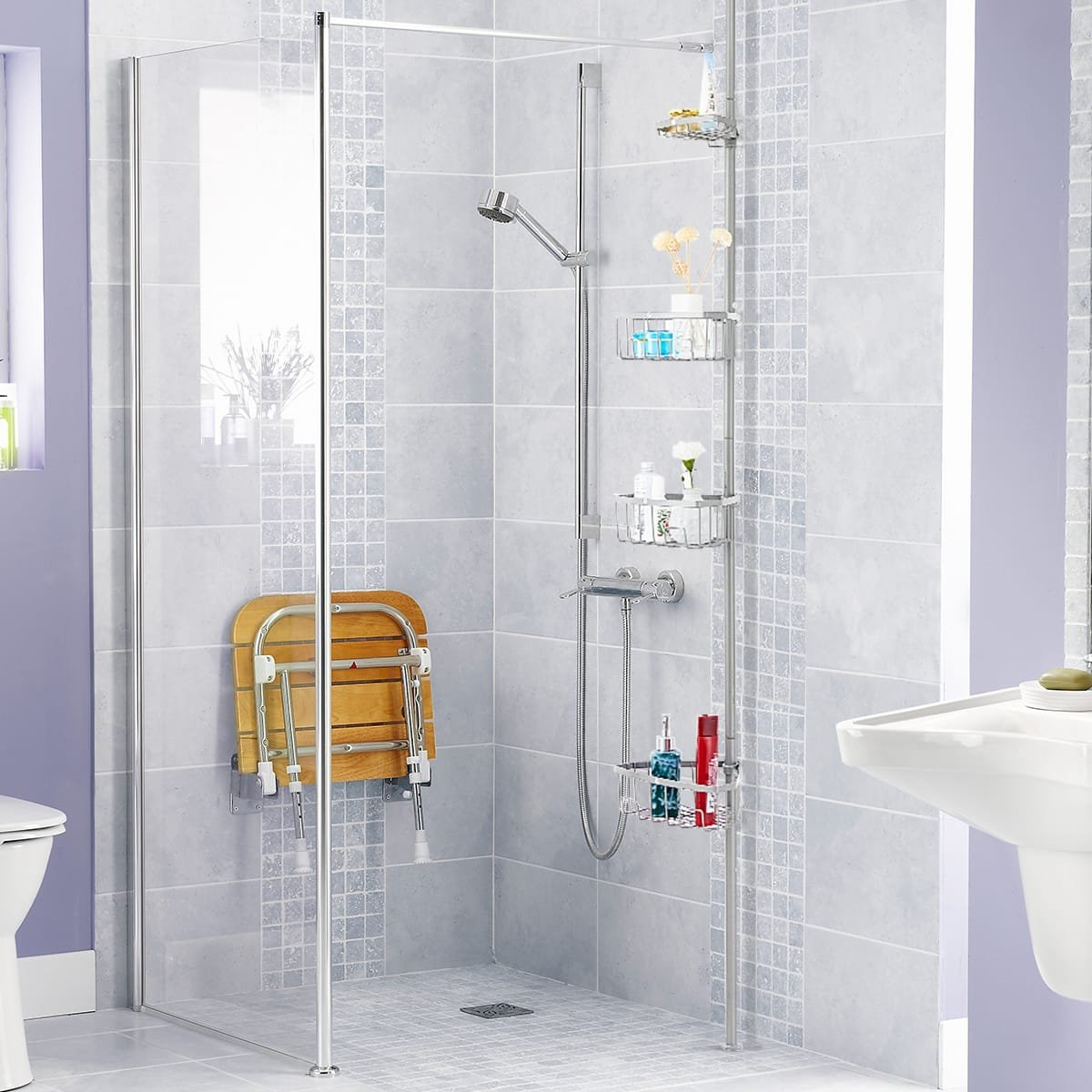 Atnaujinkite savo vonios kambarį su šiuo stilingu ir universaliu teleskopiniu kampiniu lentynų stovu. Jo funkcionalumas ir elegancija puikiai papildys bet kokią erdvę, suteikdama patogumo ir tvarkos.