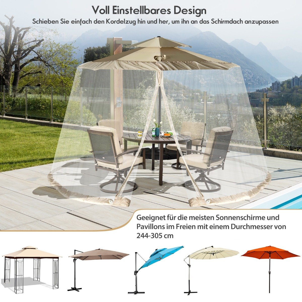 - 1 x Terasos skėčio tinklelis nuo uodų