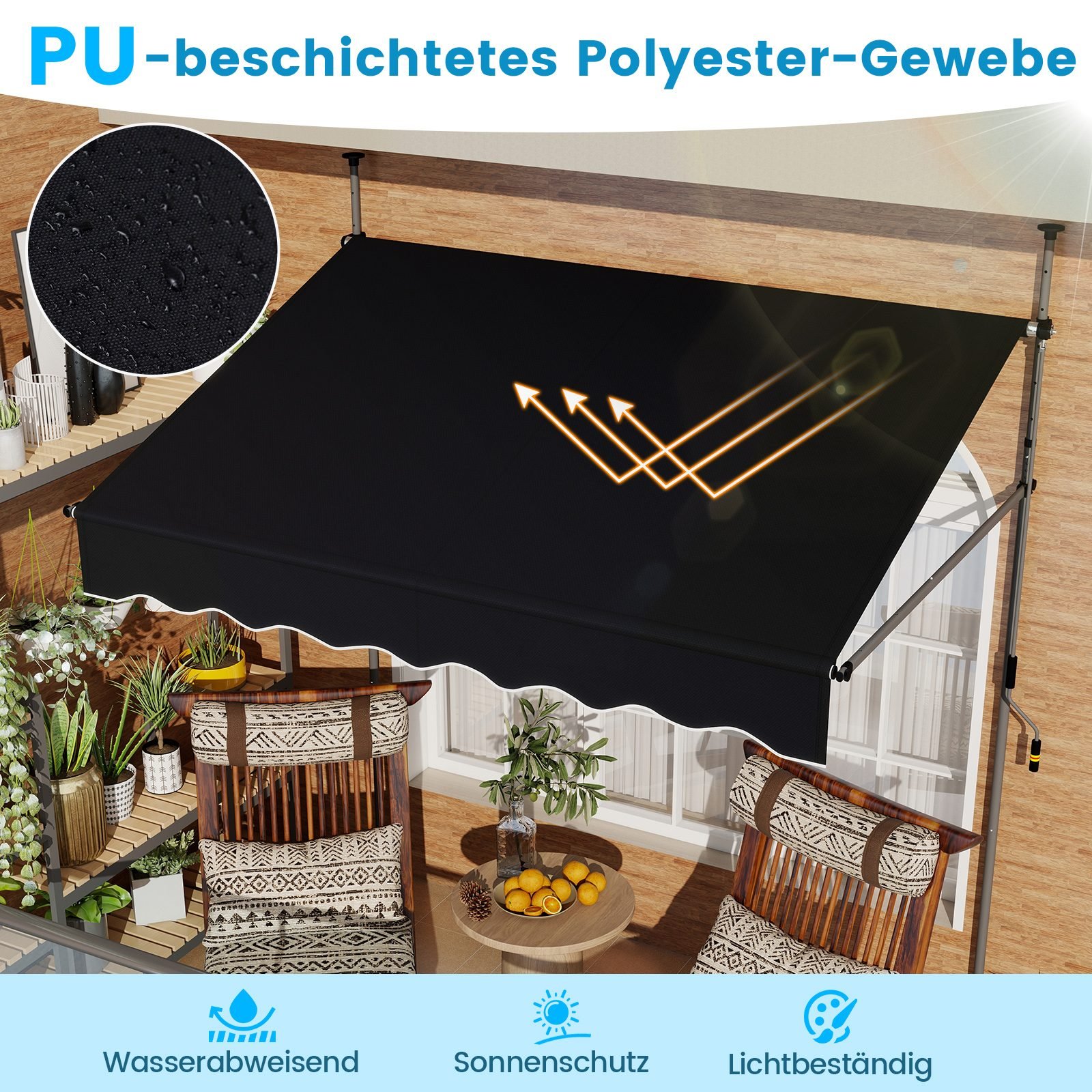 - Reguliuojamas aukštis ir kampas leidžia pritaikyti markizę pagal jūsų poreikius.