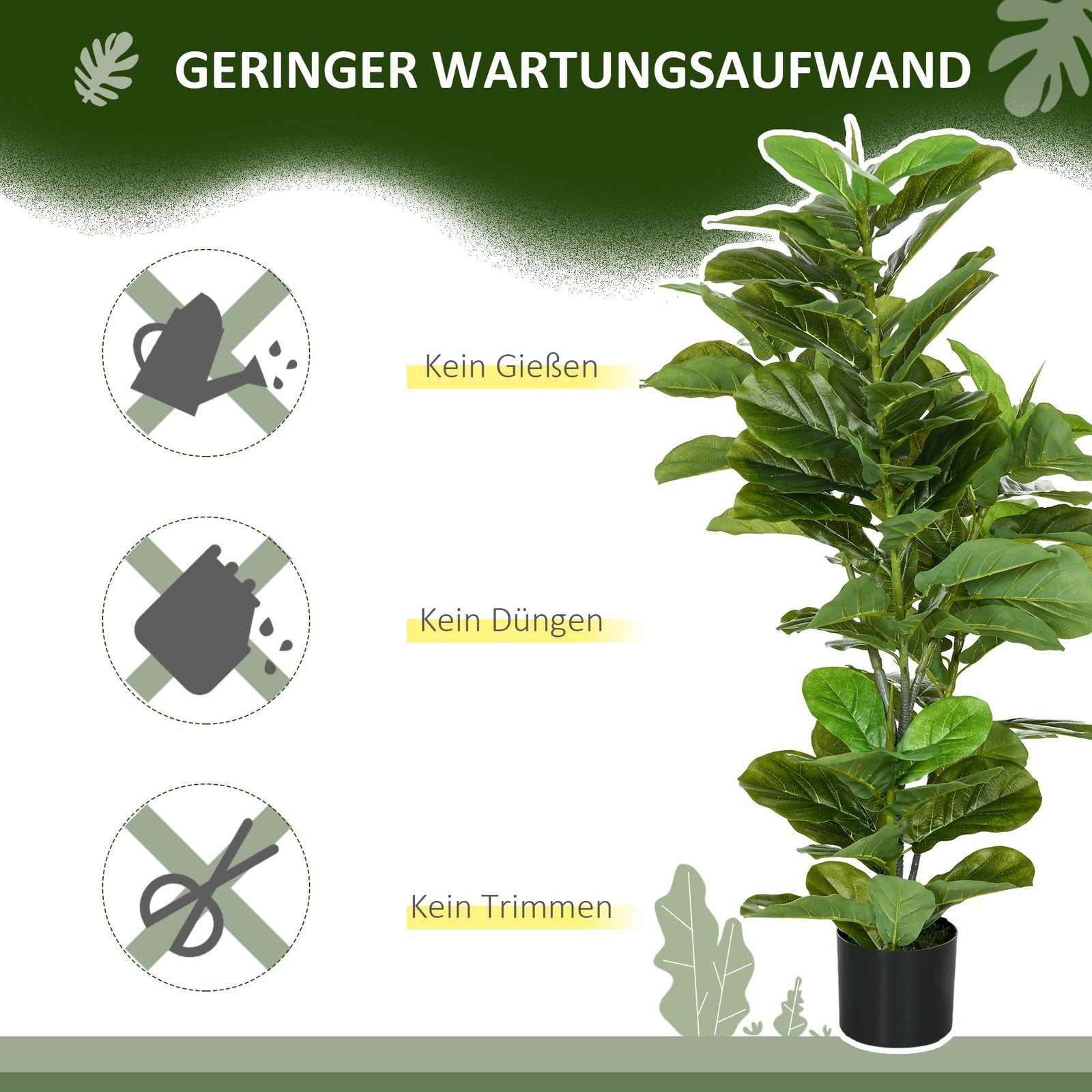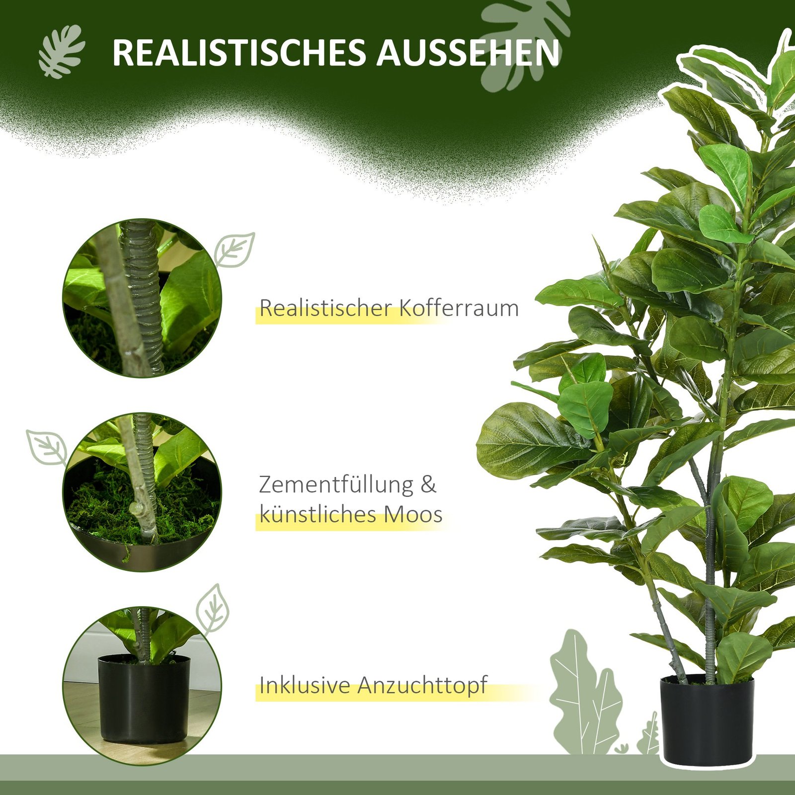 ✔ Su 90 tikroviškų lapų, imituojančių tikro fikuso išvaizdą