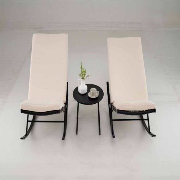 Patirkite ramų sūpynės jausmą su mūsų 3 dalių lauko bistro komplektu! Šie supamieji krėslai sukurti taip, kad suteiktų raminantį sūpavimosi potyrį ir užtikrintų maksimalų atsipalaidavimą. Pagaminti iš aukštos kokybės PE rotango, šie lauko baldų komplektai spinduliuoja nesenstančią eleganciją ir ilgaamžiškumą.