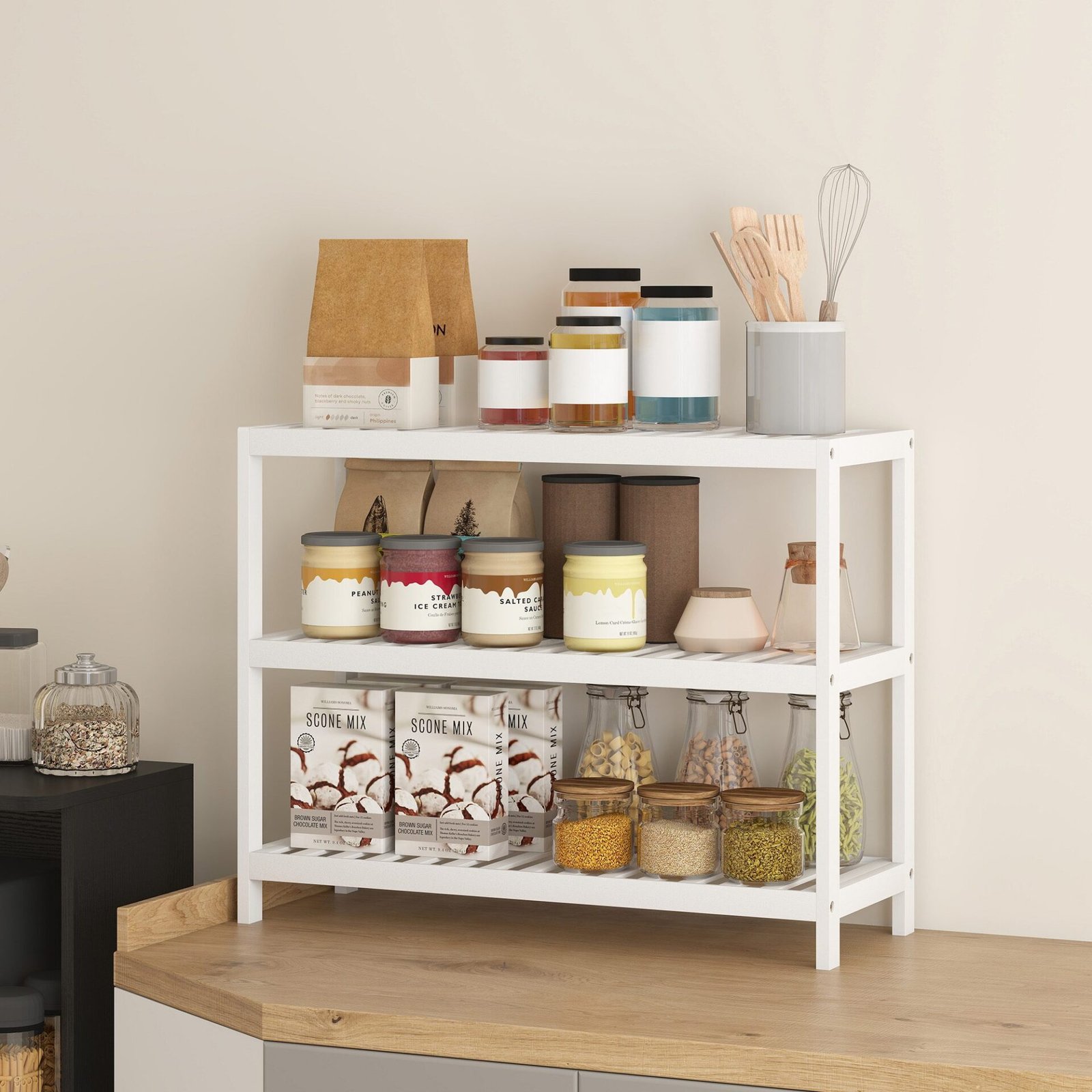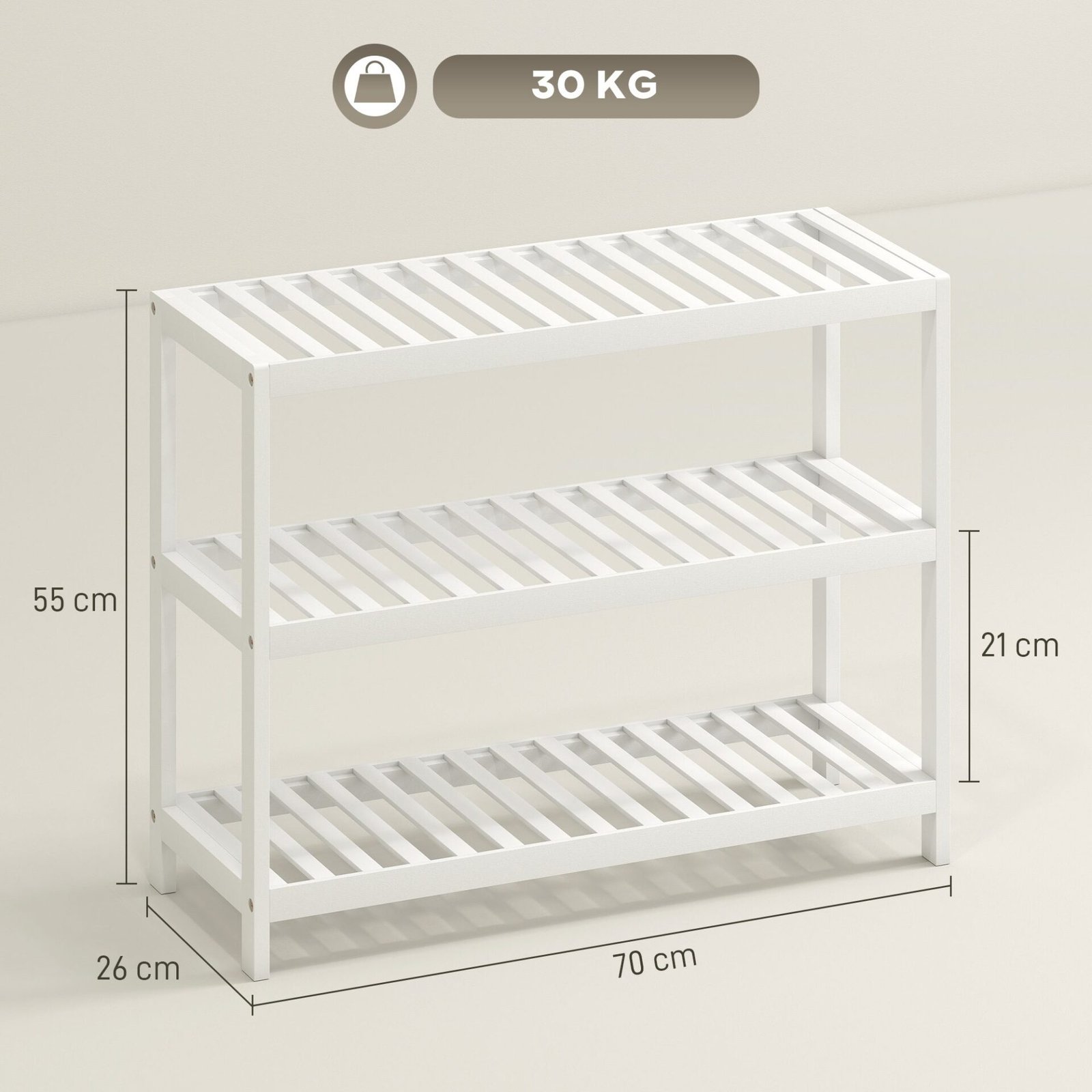 Trijų lygių bambukinė batų ir daiktų lentyna