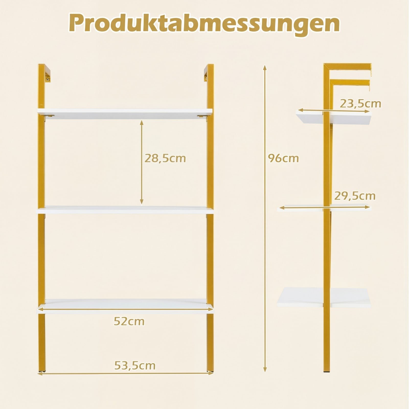 Trijų lygių sieninė lentyna su metaliniu rėmu (Balta)