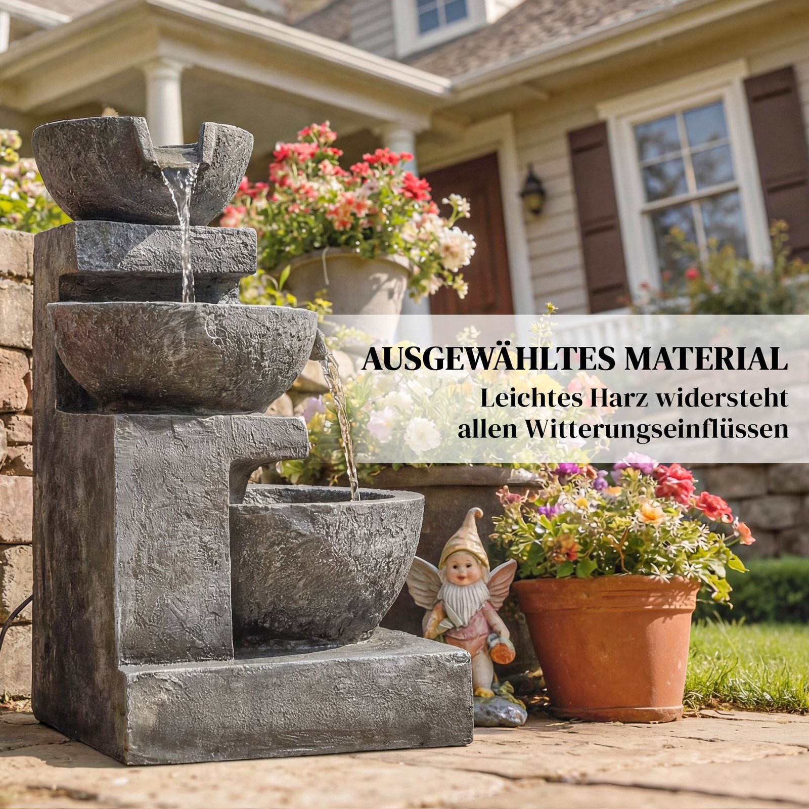 Ar jums sunku atsipalaiduoti triukšmingoje, neįkvepiančioje lauko erdvėje? Nuolatinis blaškymasis apsunkina atsipalaidavimą, o jūsų susibūrimams gali trūkti ypatingo prieskonio. Šis fontanas pavers jūsų terasą ramia oaze. Reguliuojamas vandens srautas sukuria raminantį krioklio garsą, o integruotos LED lemputės skleidžia šiltą, kviečiančią šviesą, paversdamos kiekvieną vakarą nepamirštama patirtimi.