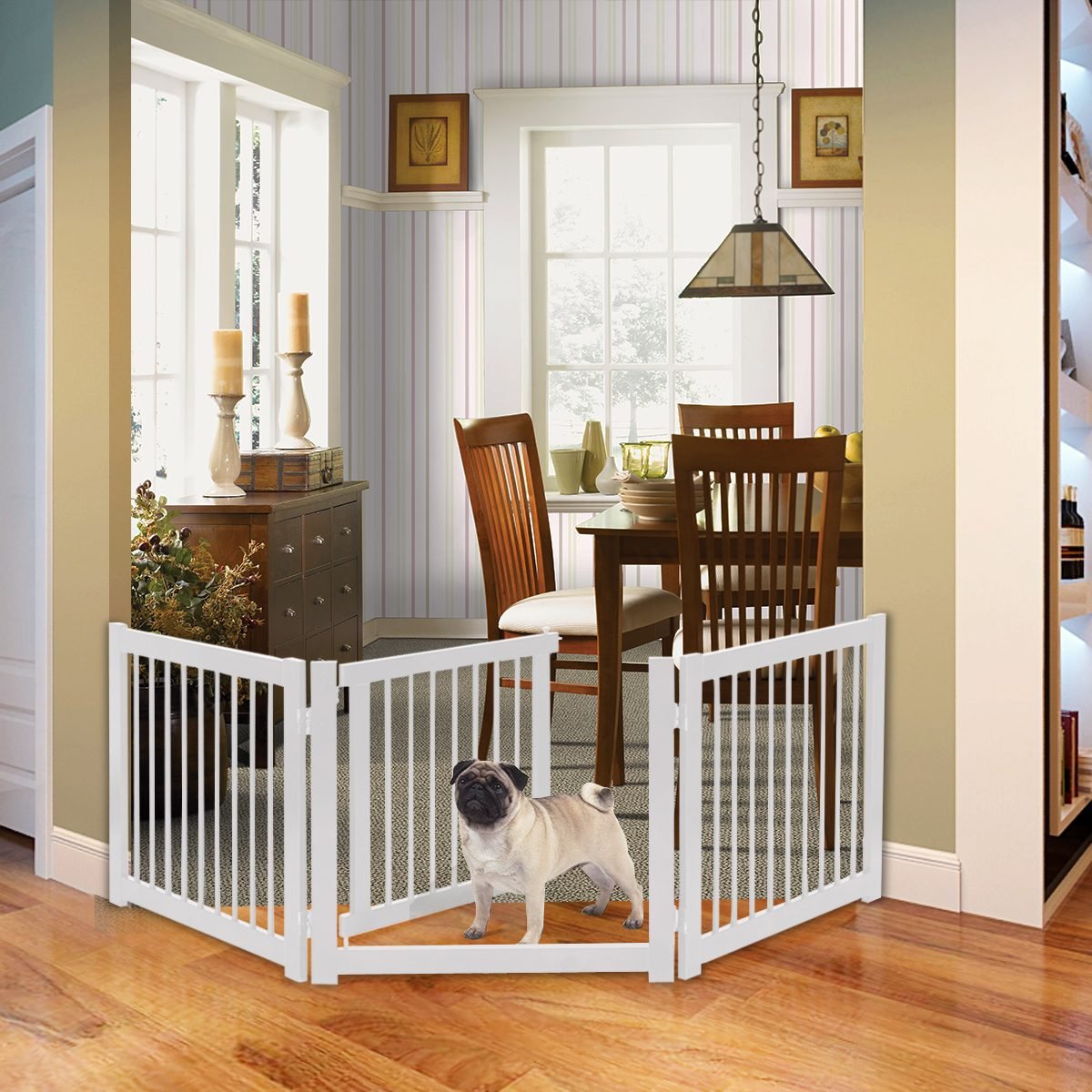 Trijų panelių atidaromas medinis šunų aptvaras su durelėmis (Balta)