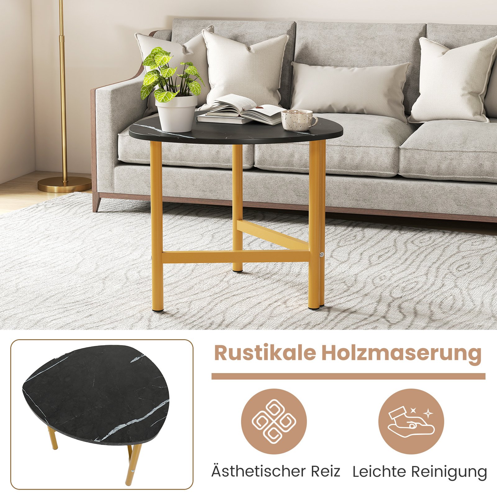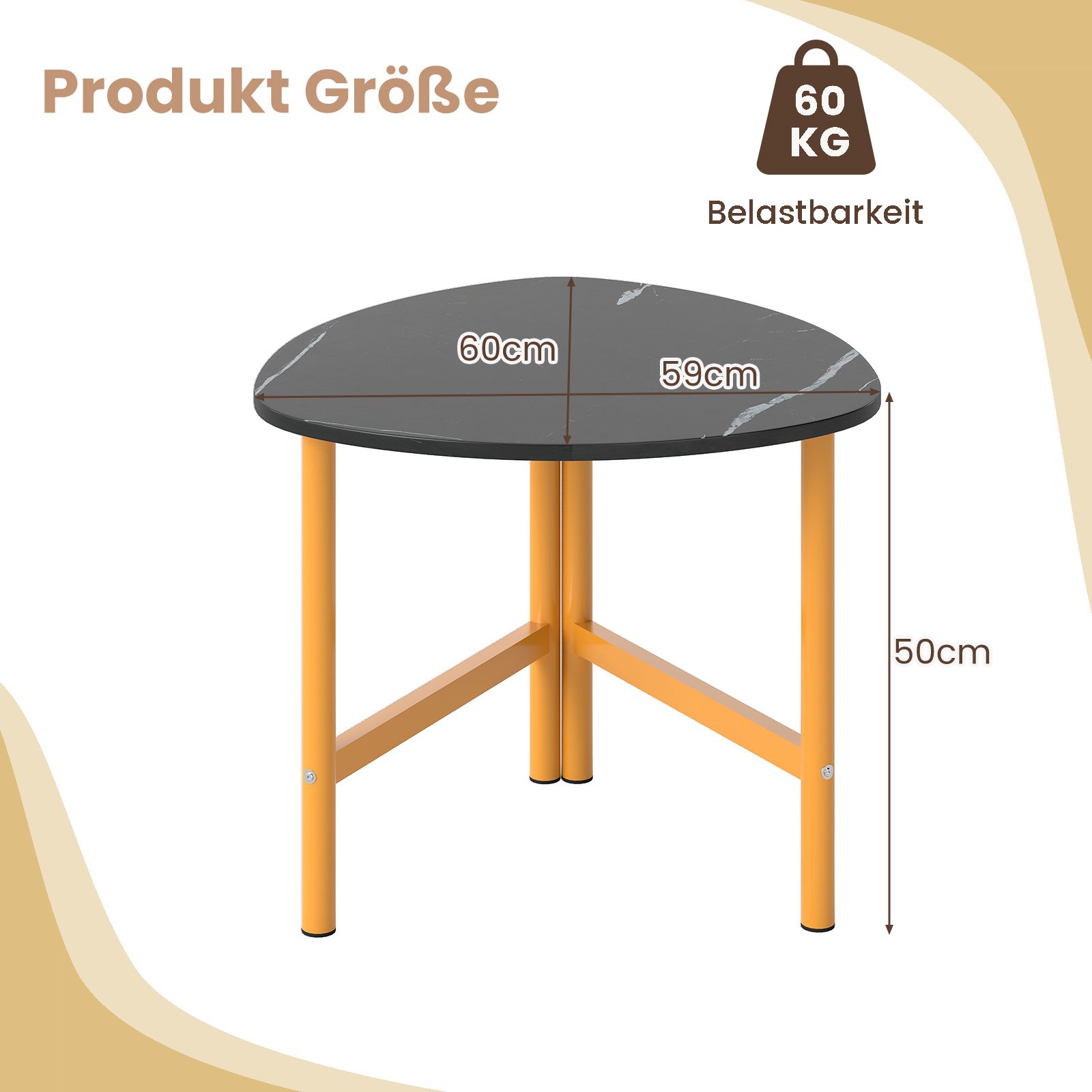 Atraskite tobulą stiliaus ir funkcionalumo derinį su šiuo unikaliu trikampiu kavos staliuku. Jo išskirtinis rustiško stiliaus medienos paviršius sukuria elegantišką atmosferą, tapdamas patraukliu Jūsų svetainės akcentu. Tvirtos metalinės kojos užtikrina stabilumą ir ilgalaikį naudojimą, o erdvus paviršius suteikia pakankamai vietos gėrimams, dekoracijoms ar žurnalams.
