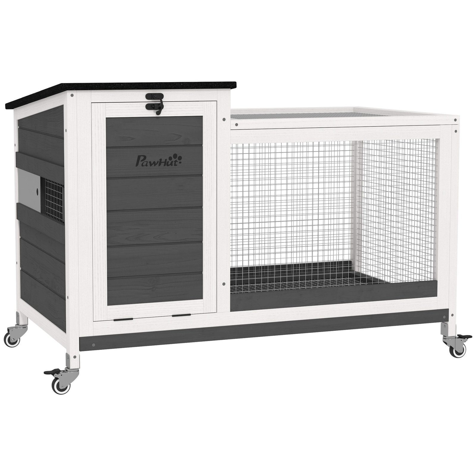 Mėgaukitės lengva naminių gyvūnėlių priežiūra su triušių narvu! Dėl išmanaus ištraukiamo padėklo ir grotelių grindų triušių narvą valyti yra itin paprasta, ir tai neleidžia gyvūnams užsibūti purve. Jį galima be vargo perkelti su pritvirtintais ratukais. Įvairūs įėjimai ir oro sąlygoms atsparus naminių gyvūnėlių namelio stogas garantuoja, kad jūsų pūkuoti draugai bus patenkinti bet kokiu oru!