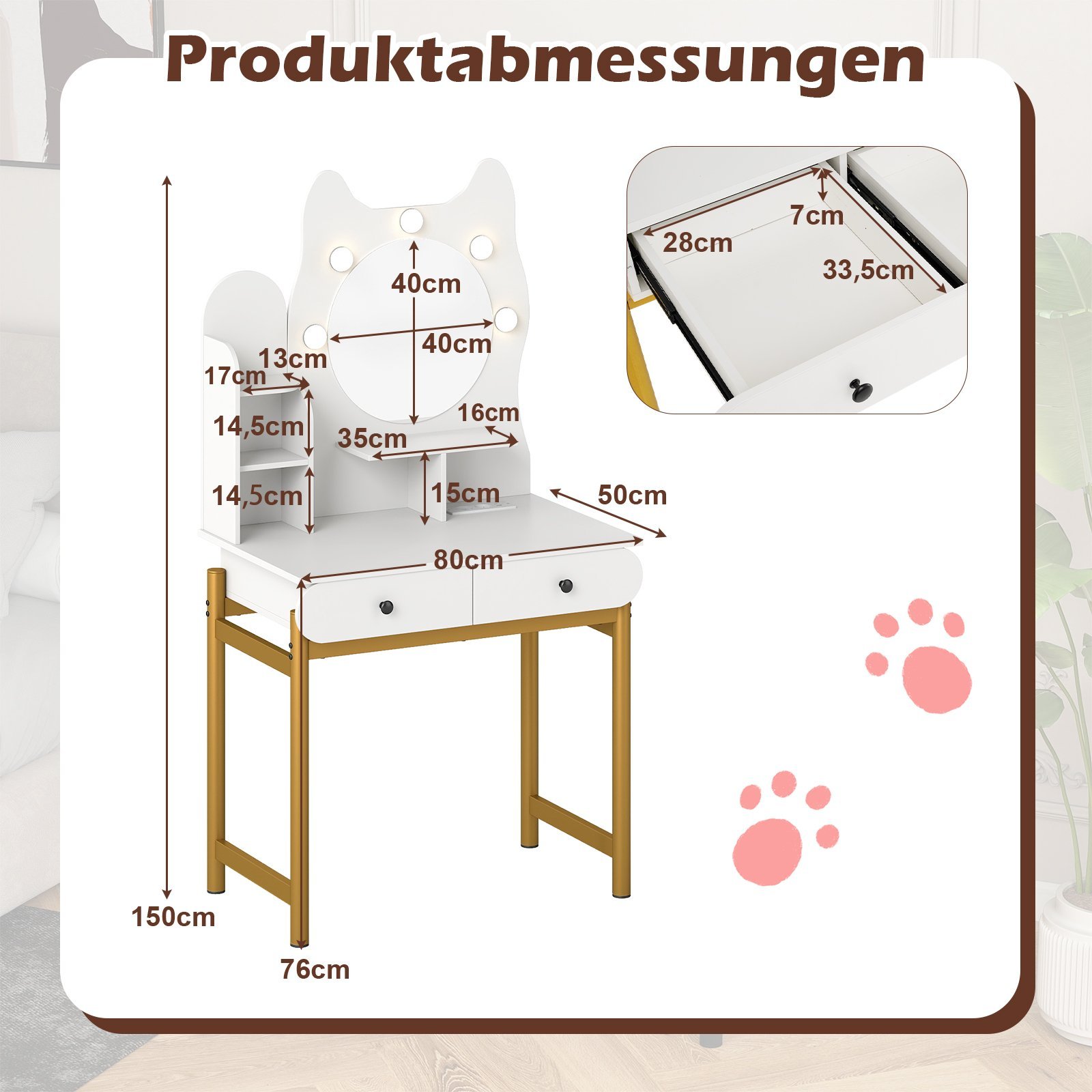 Tualetinis staliukas su katės formos veidrodžiu ir LED apšvietimu (Balta)