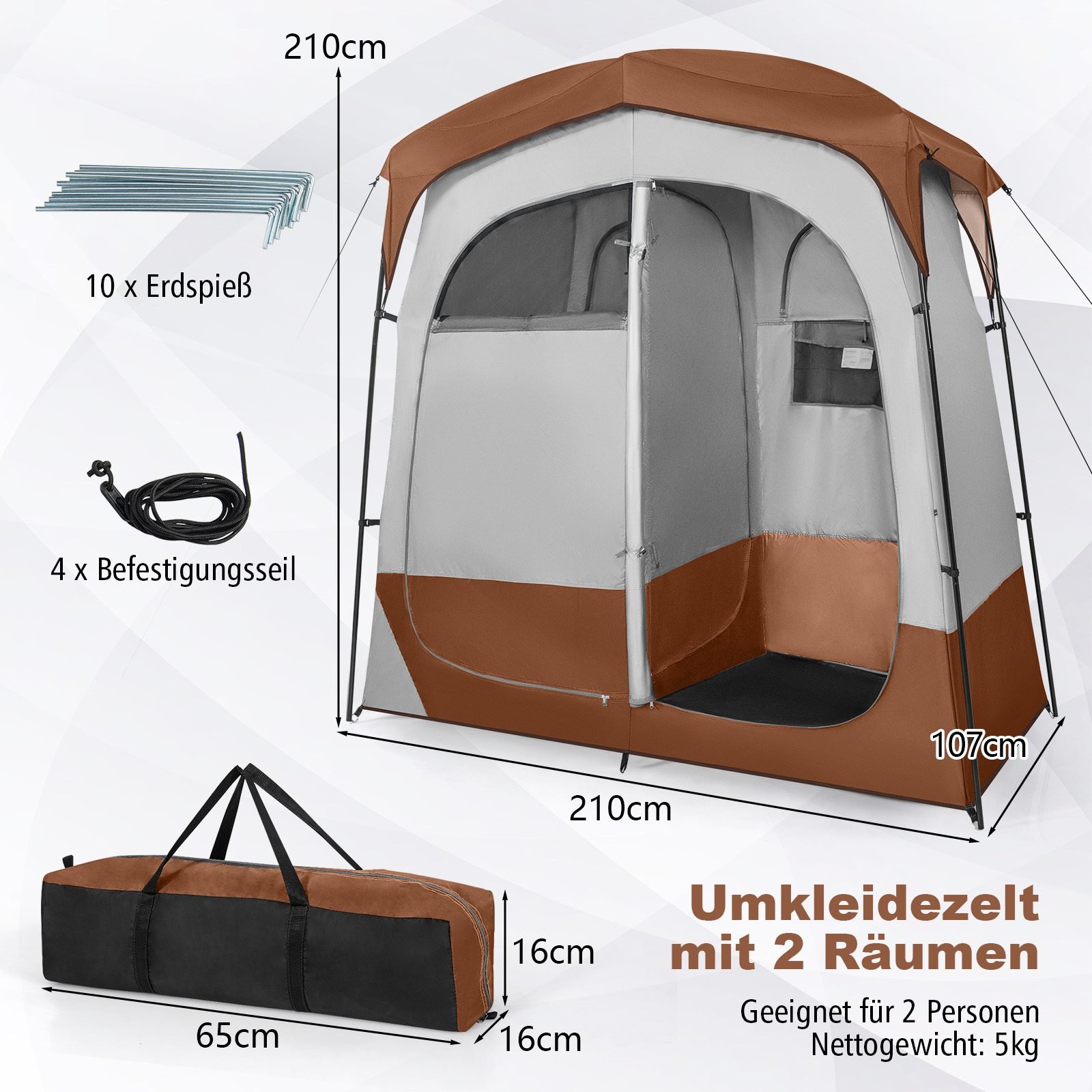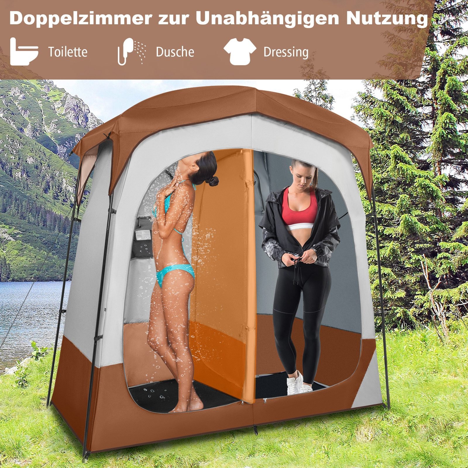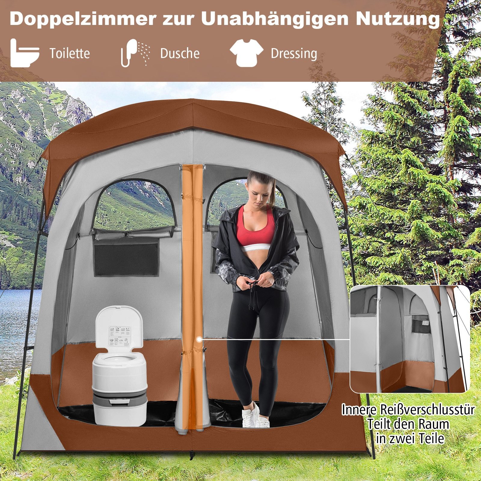 Tualeto ir dušo palapinė su pertvaromis (Ruda)