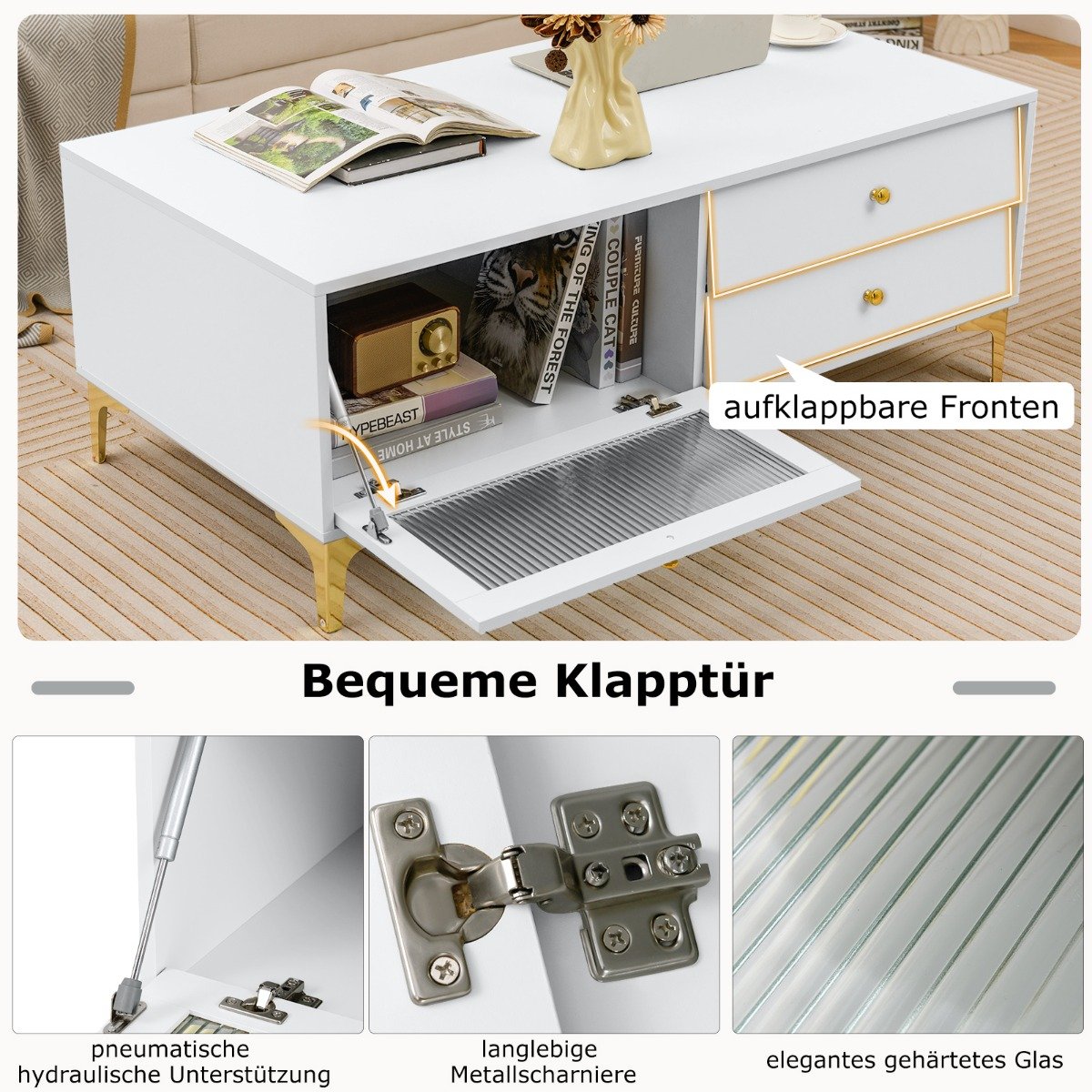 - Uždaras skyrius ir du stalčiai papildomam daiktų laikymui.