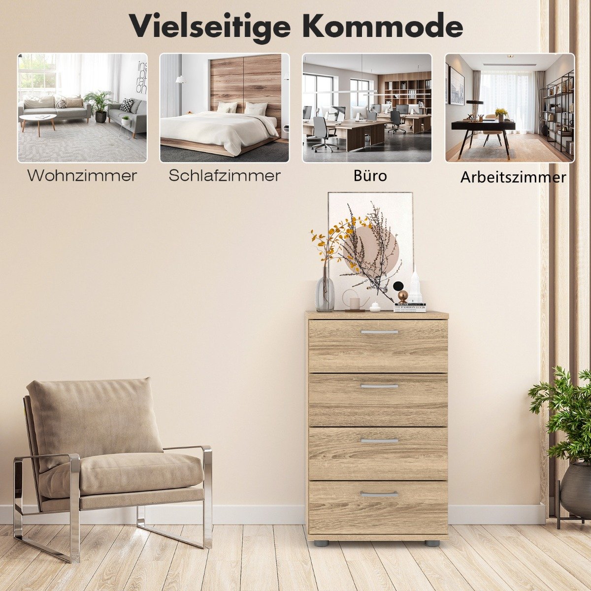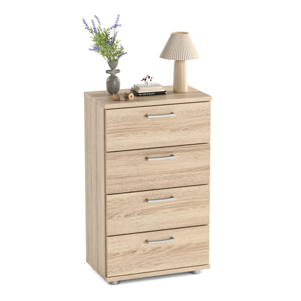 Tvirta 4 stalčių komoda su apsauginiu mechanizmu (Natūrali)