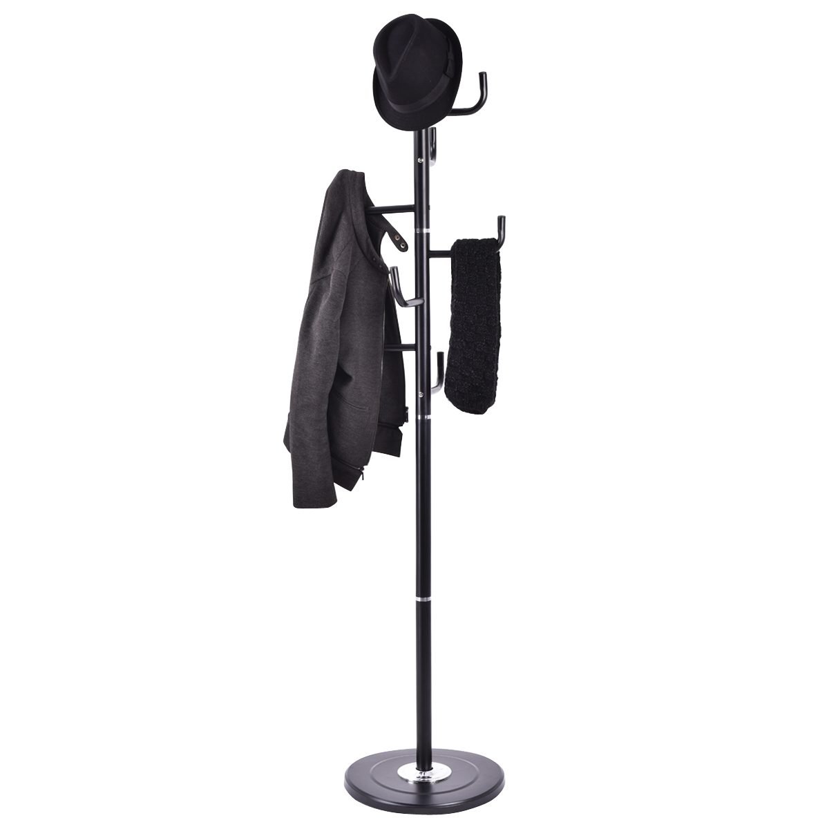 Tvirtas metalinis drabužių stovas su 8 kabliais (Juoda)