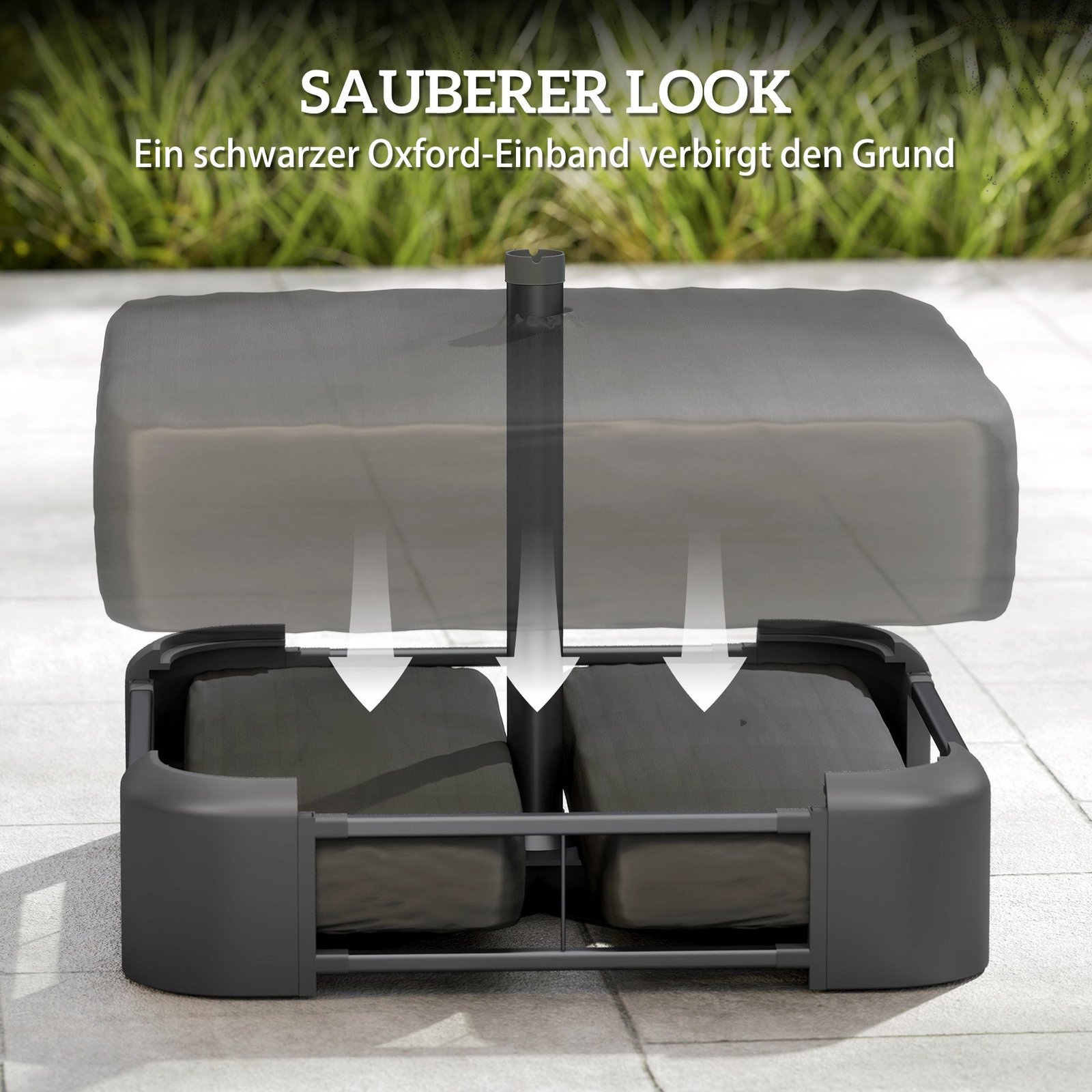 ✔ Elegantiškas juodas dangtelis paslepia du smėlio maišus ir pagrindą, kad atrodytų tvarkingai