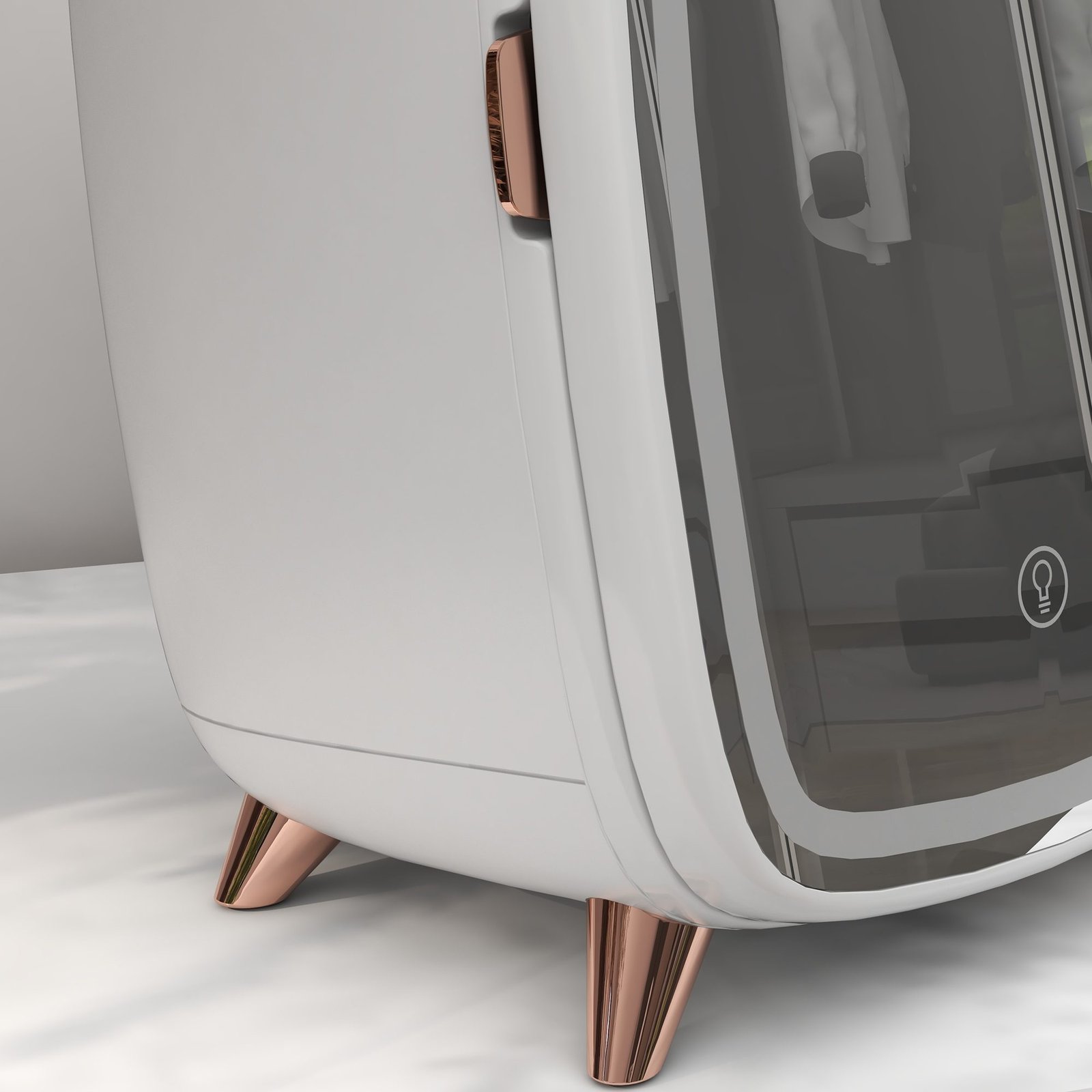 ✔ Turi apsauginius padelius ant kosmetikos šaldytuvo kojelių didesniam stabilumui