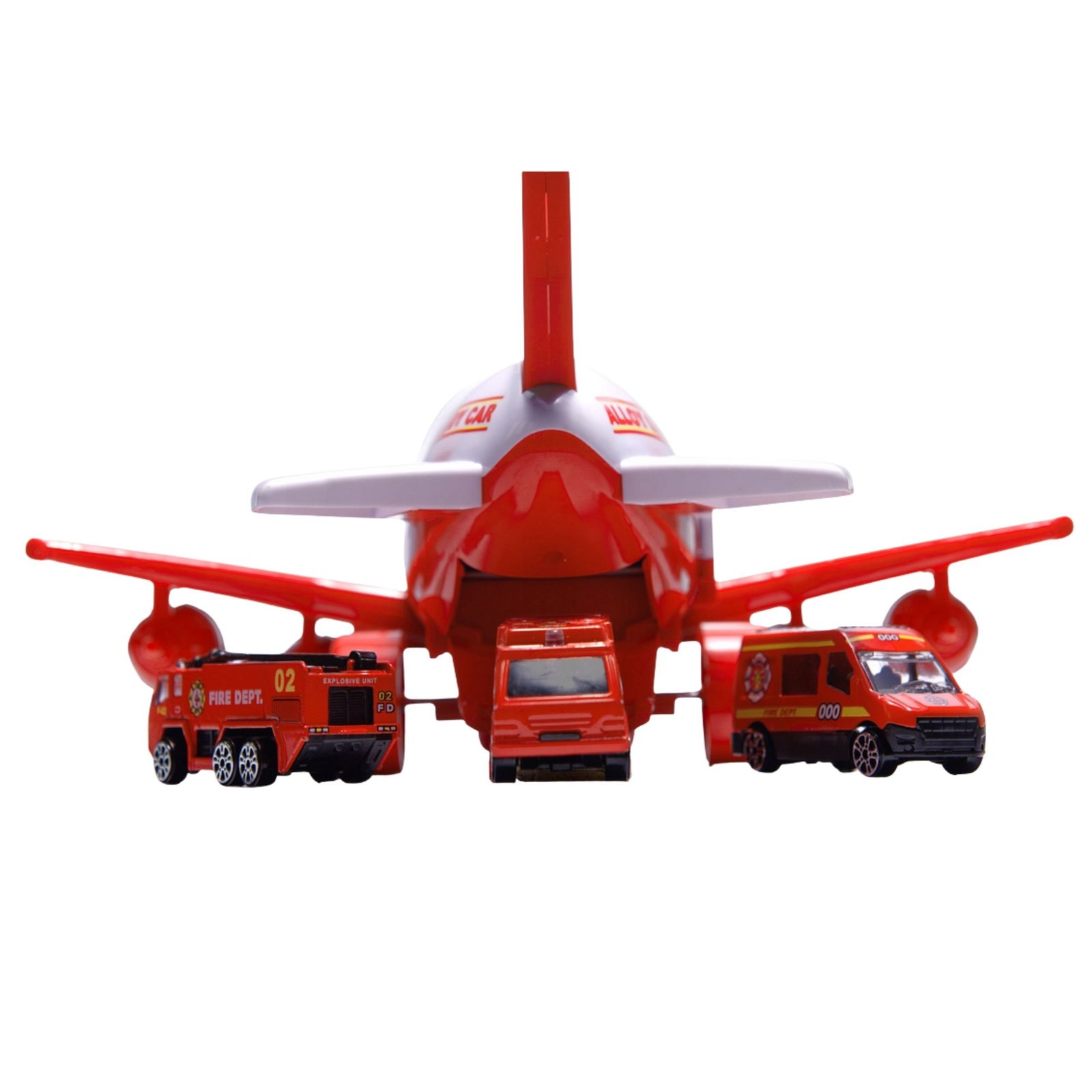 Ugniagesių lėktuvas-transporteris nukels vaiką į įtraukiančių gelbėjimo misijų pasaulį. Erdviame lėktuvo korpuse telpa trys ugniagesių mašinos ir kelio ženklų rinkinys, atveriantis plačias žaidimo galimybes. Keturi mygtukai aktyvuoja tikroviškus garsus ir mirksinčias LED lemputes, suteikdami žaidimui dar daugiau tikroviškumo. Atidaromos durys ir nuleidžiama rampa suteikia žaidimui dar daugiau dinamikos. Puikus pasirinkimas mažajam herojui nuo 3 metų, skatinantis vaizduotę ir mokantis atsakomybės.