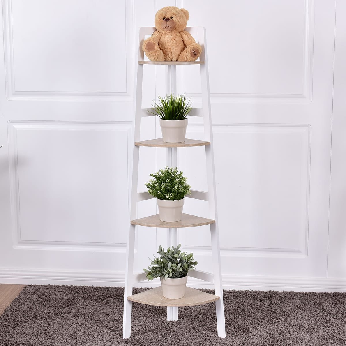 Ši universali pastatoma lentyna, išsiskirianti paprastu ir stilingu dizainu, puikiai tinka įvairioms namų erdvėms: miegamajam, prieškambariui ar svetainei. Jos praktiškas kampinis dizainas leidžia efektyviai išnaudoti erdvę, sukurdama jaukią ir funkcionalią aplinką. Lentyna suteikia pakankamai vietos jūsų augalams, knygoms ar dekoracijoms, o jos modernus stilius lengvai dera prie bet kokio interjero.