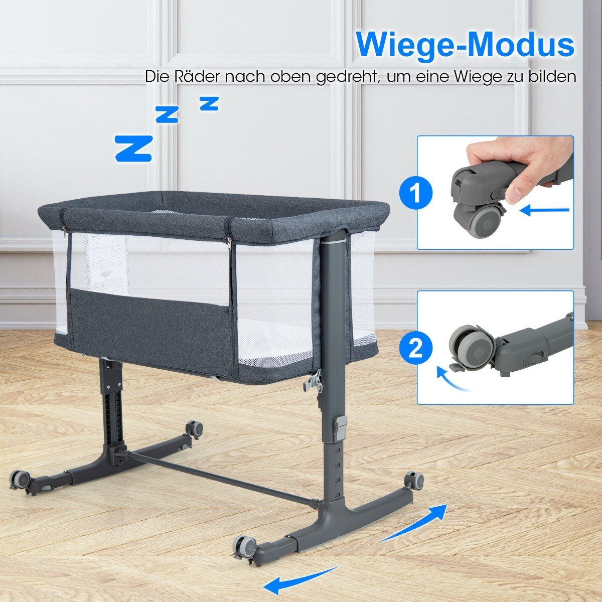 Universali kūdikio lovelė-lopšys su čiužiniu (Tamsiai pilka)