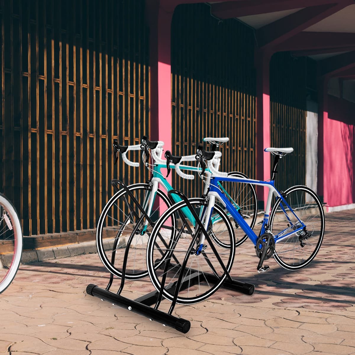 Šis stabilus dviračių stovas puikiai tinka įvairiems poreikiams. Jis patikimai laiko jūsų dviračius, yra stabilus ir nereikalauja papildomo tvirtinimo prie pagrindo. Stovas tinka naudoti tiek viduje, tiek lauke, užtikrindamas maksimalų patogumą ir lankstumą.