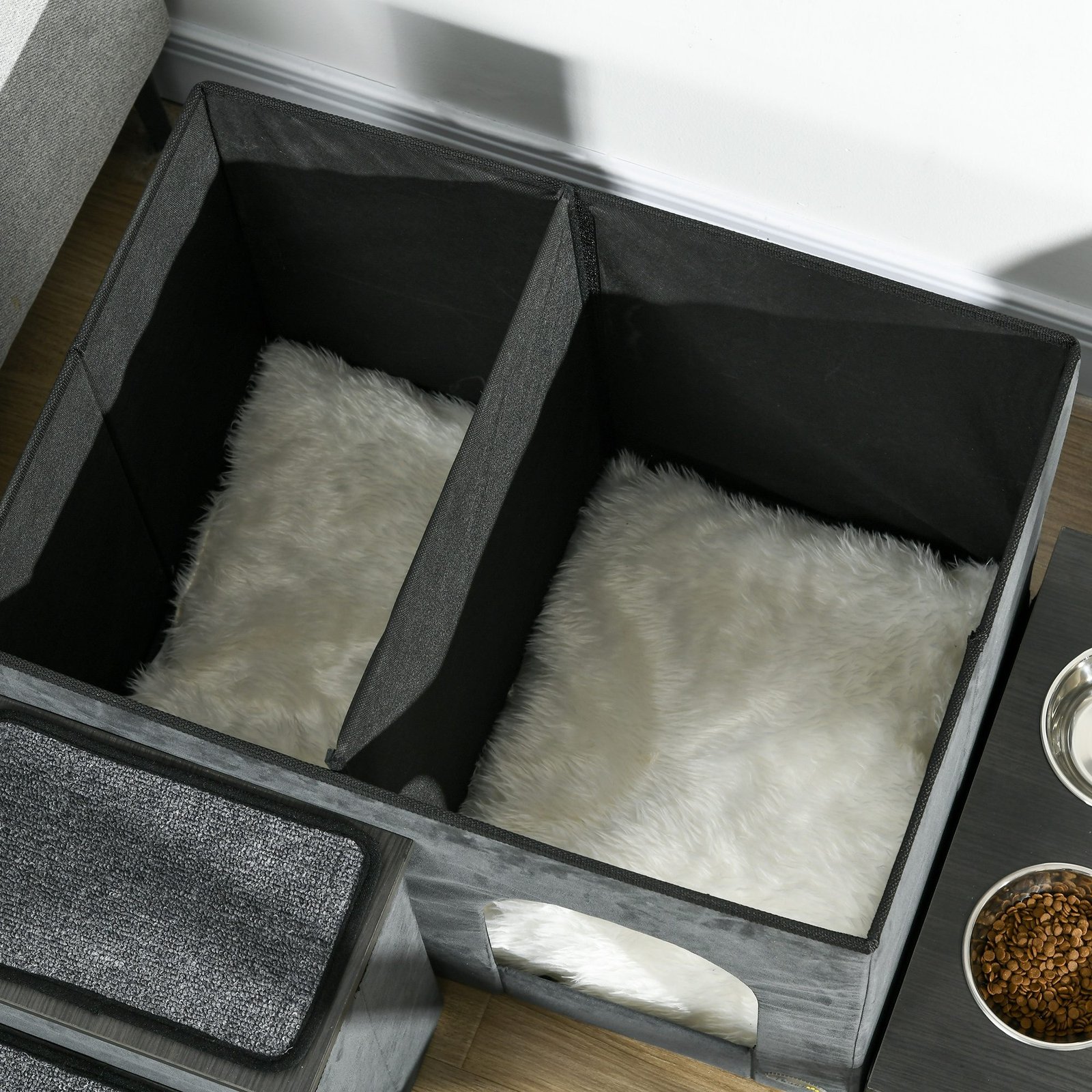 ✔ Galima išdėstyti kaip laiptelius, dubenėlį ar namelį katėms/šunims
