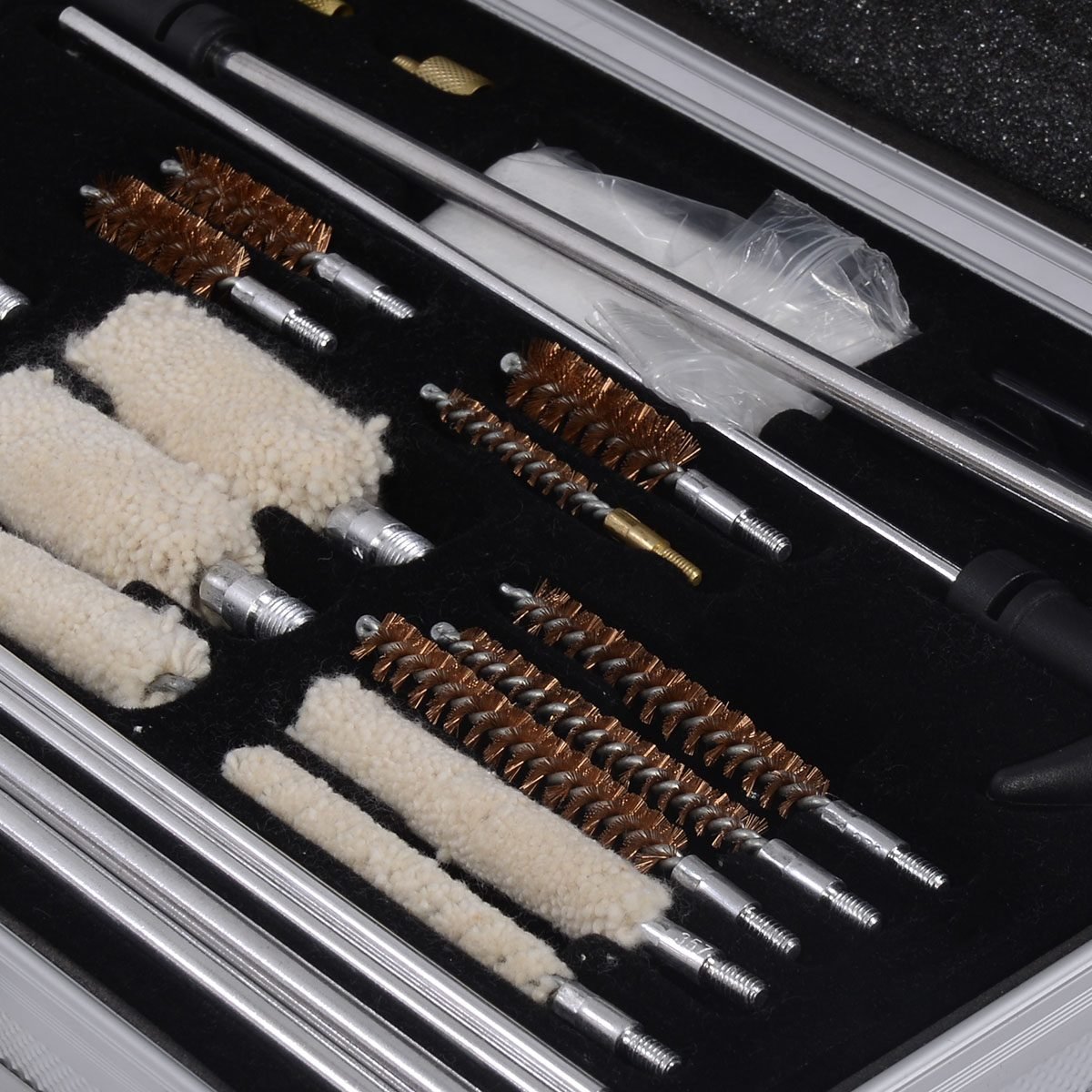 - Profesionalus įrankių komplektas: Sukurtas profesionaliam naudojimui, užtikrinantis efektyvų ir kruopštų ginklų valymą.