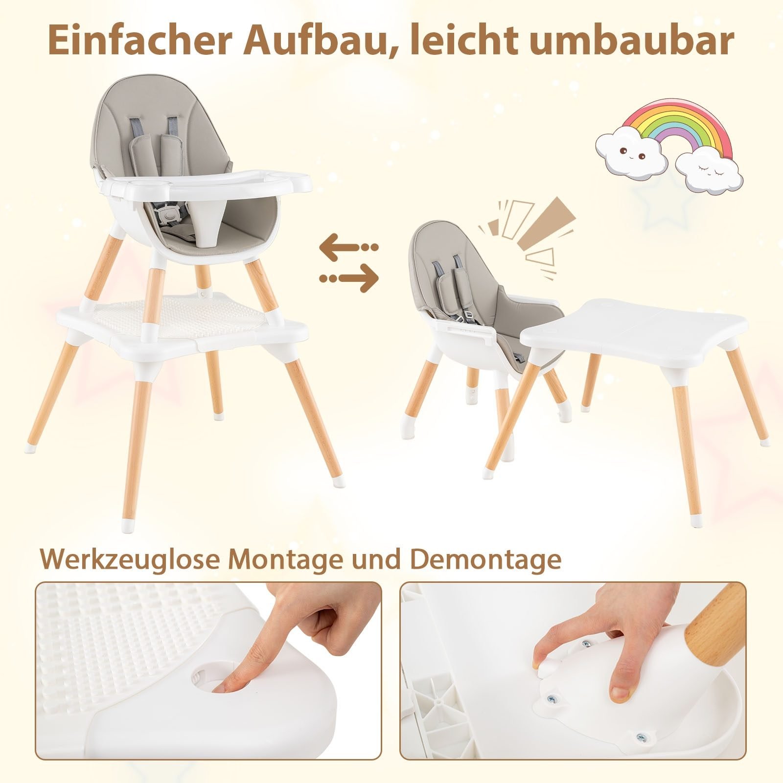 - Transformuojasi į 6 skirtingus nustatymus: nuo aukštos kėdutės iki stalo ir kėdutės komplekto, skirto mokytis.