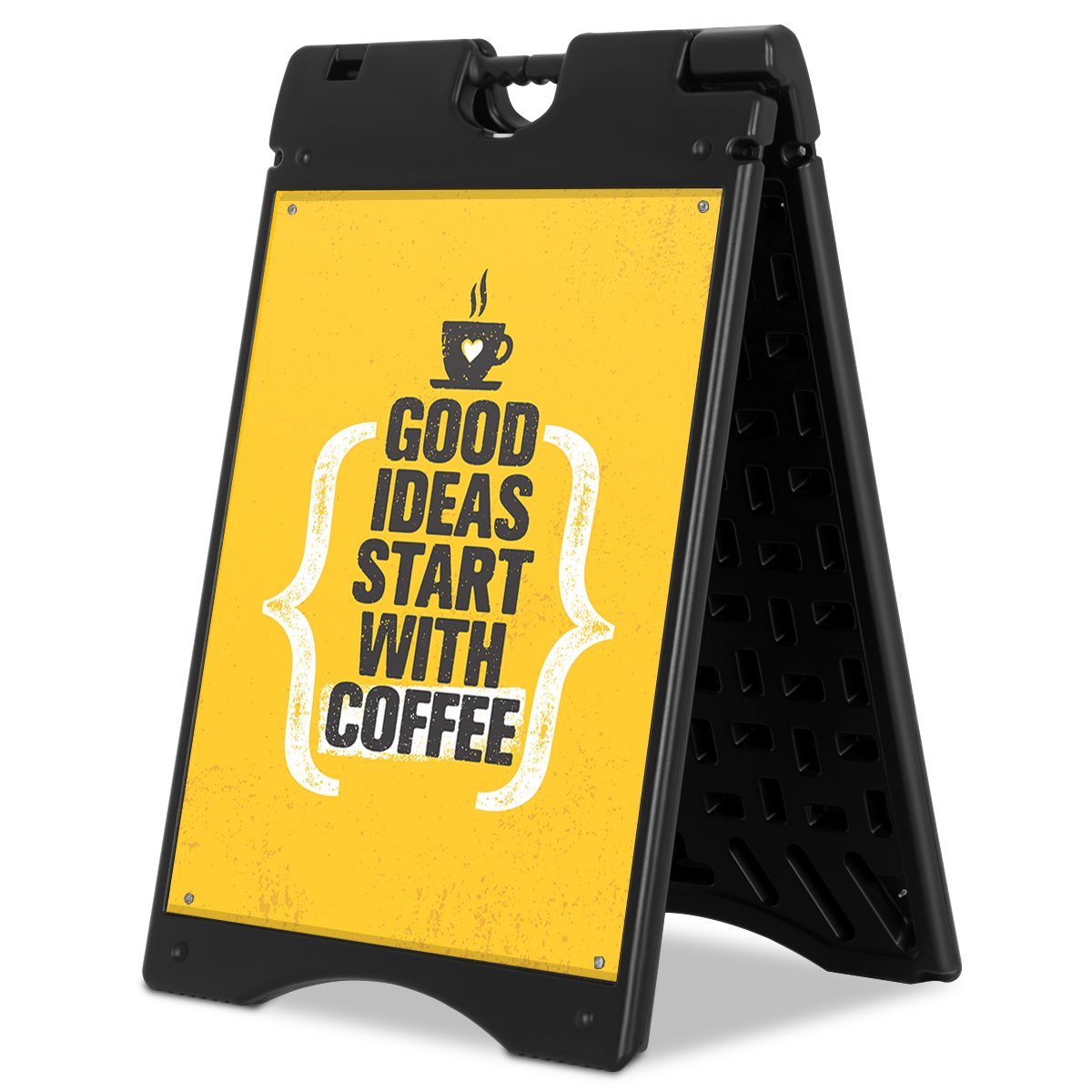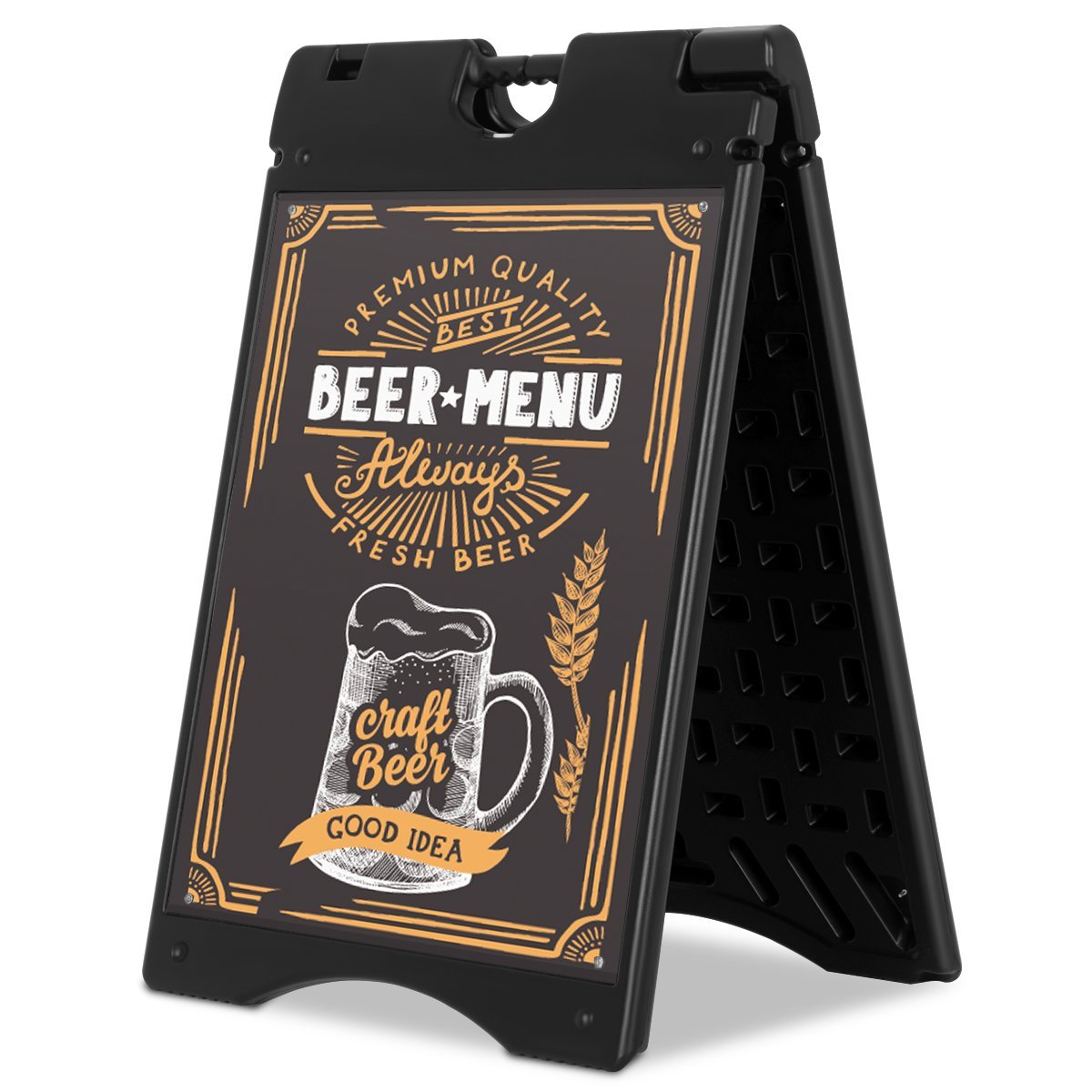 Pristatykite savo reklaminius plakatus, informaciją ar specialius pasiūlymus efektyviai ir stilingai su šiuo daugiafunkciu reklaminiu stendu. Jo tvirta konstrukcija su vandeniu užpildomu pagrindu užtikrina išskirtinį stabilumą tiek vidaus, tiek lauko sąlygomis. Tai idealus sprendimas verslo įmonėms, kavinėms, restoranams ar renginiams, siekiantiems pritraukti dėmesį.