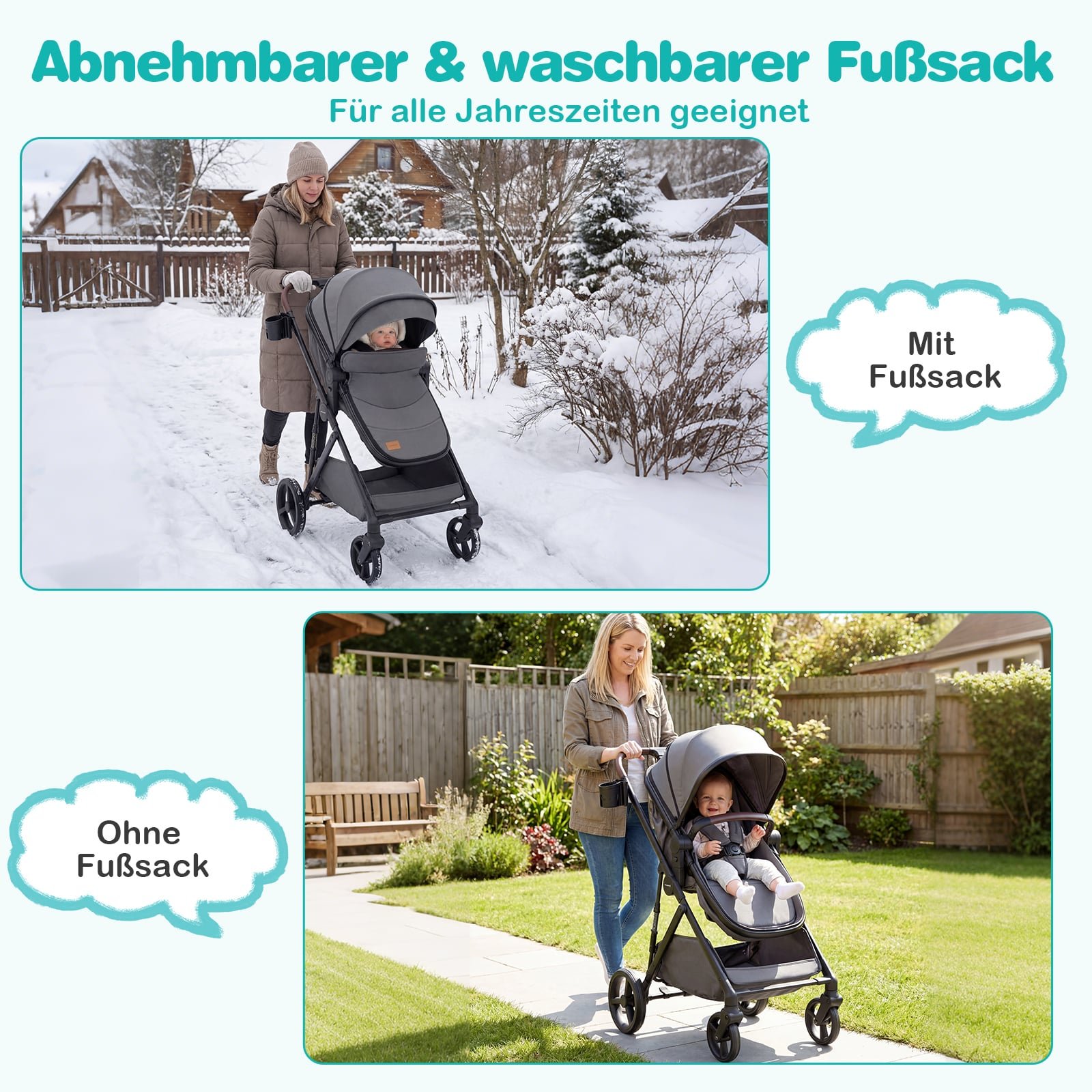 - Patogumas ir apsauga: Reguliuojamas stogelis ir atlošas (105°-180°) užtikrina komfortą ir apsaugą nuo saulės ar vėjo bet kokiu oru.