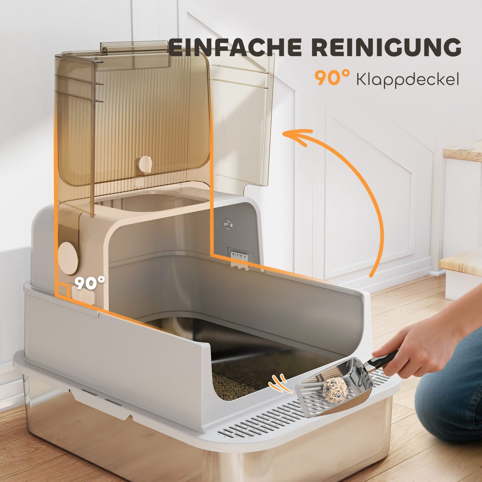 Uždaras didelis nerūdijančio plieno kačių tualetas su atlenkiamu dangčiu