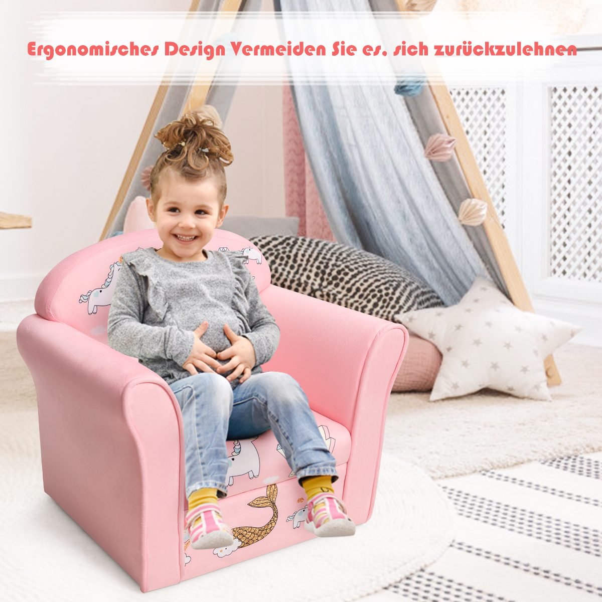 Vaikiška kėdutė su ranktūriais ir undinėlės motyvais (Rožinė)