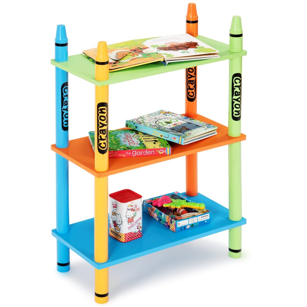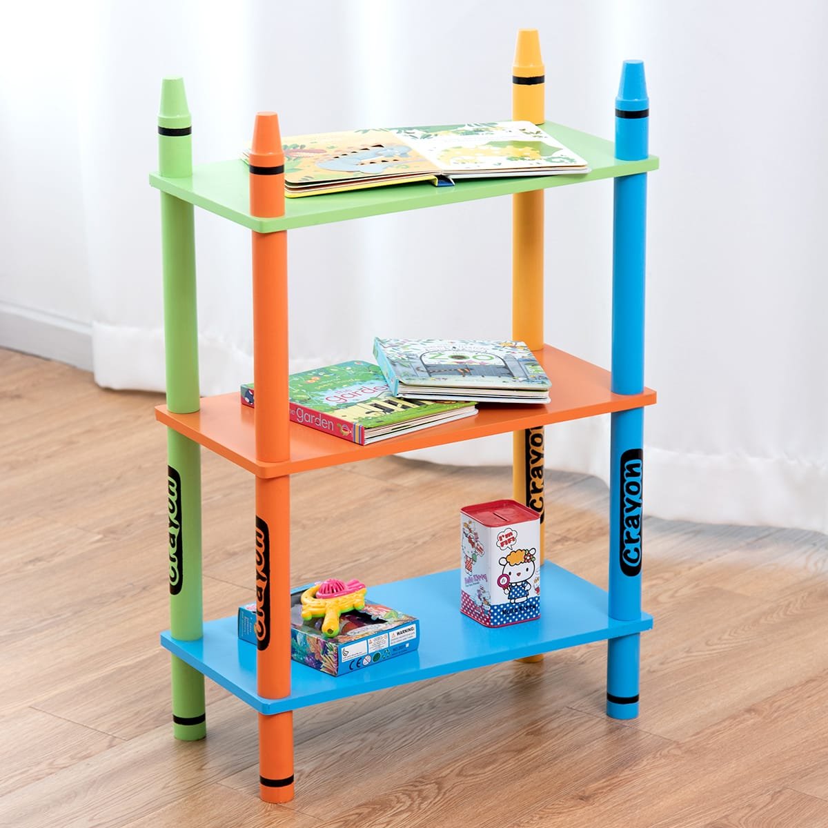 Vaikiška knygų lentyna su 3 žaislų skyriais (Spalvota)