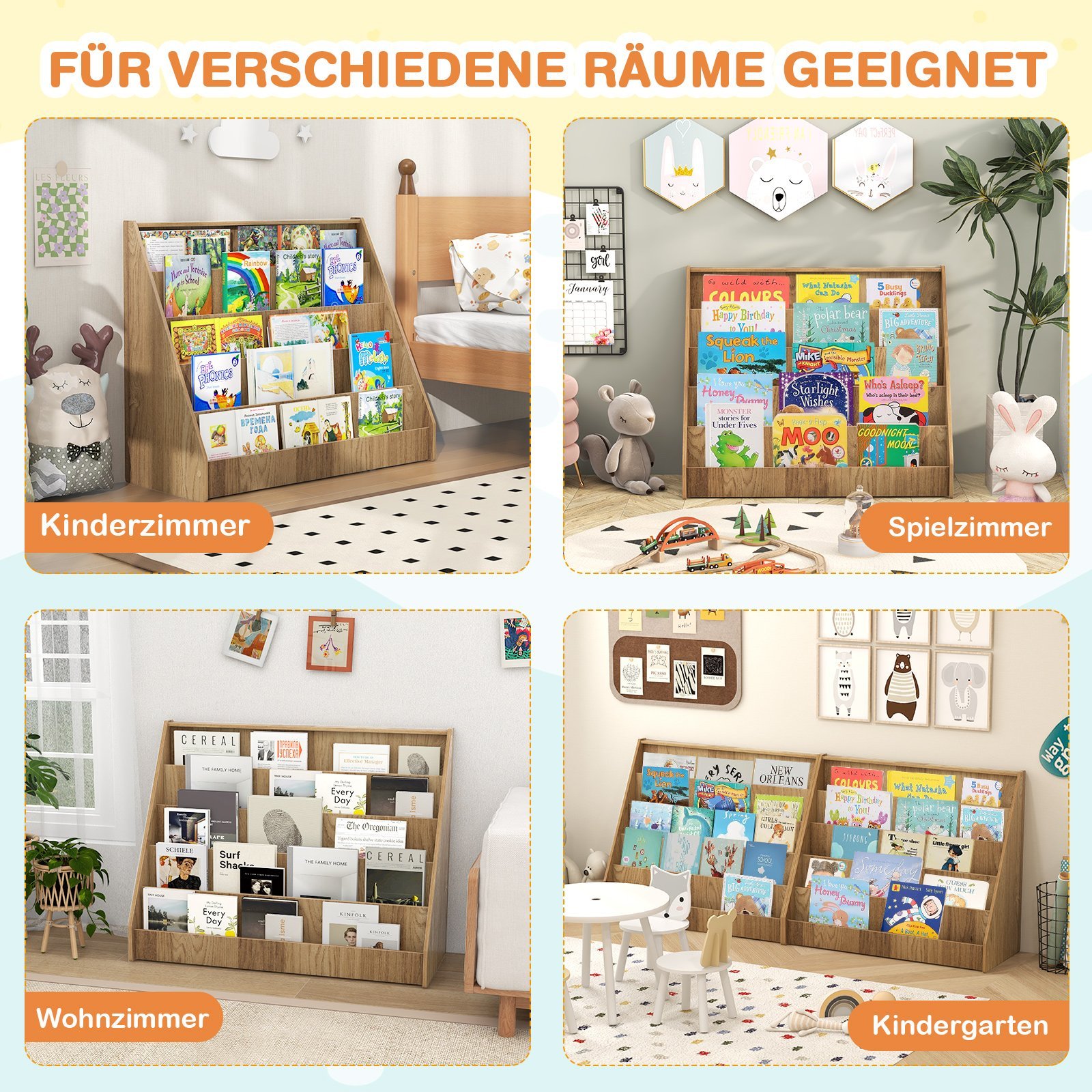 - Universalus pritaikymas: puikiai tinka kaip knygų lentyna vaikų kambaryje ar žaidimų erdvėje, taip pat kaip stilingas žurnalų stovas svetainėje ar studijoje.