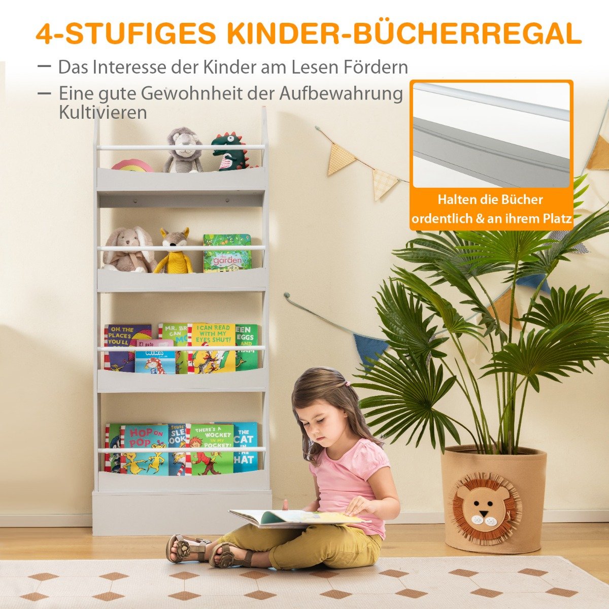 Vaikiška knygų lentyna su keturiomis pakopomis ir apsauga nuo apvirtimo (Pilka)