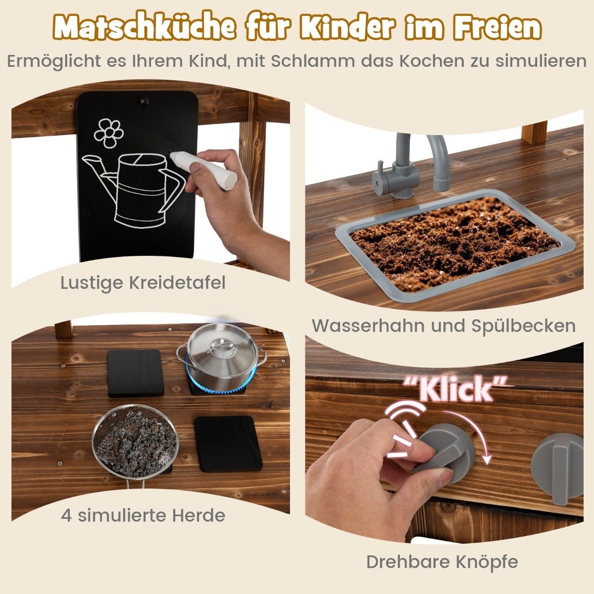 Vaikiška lauko smėlio virtuvėlė su stogeliu ir lentele (Ruda)