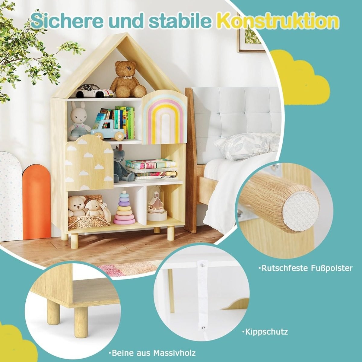 Užtikrinkite tvarką vaiko kambaryje su šia universalia lentyna! Sukurta su daugybe skyrių ir durelėmis, ši namelio formos laikymo sprendimas gali būti naudojamas kaip knygų lentyna ar žaislų saugykla, padedanti sutvarkyti vaiko daiktus. Namelio dizainas ir mielos detalės paverčia ją puikiu interjero akcentu vaiko kambaryje, skaityklėlėje ar žaidimų erdvėje.