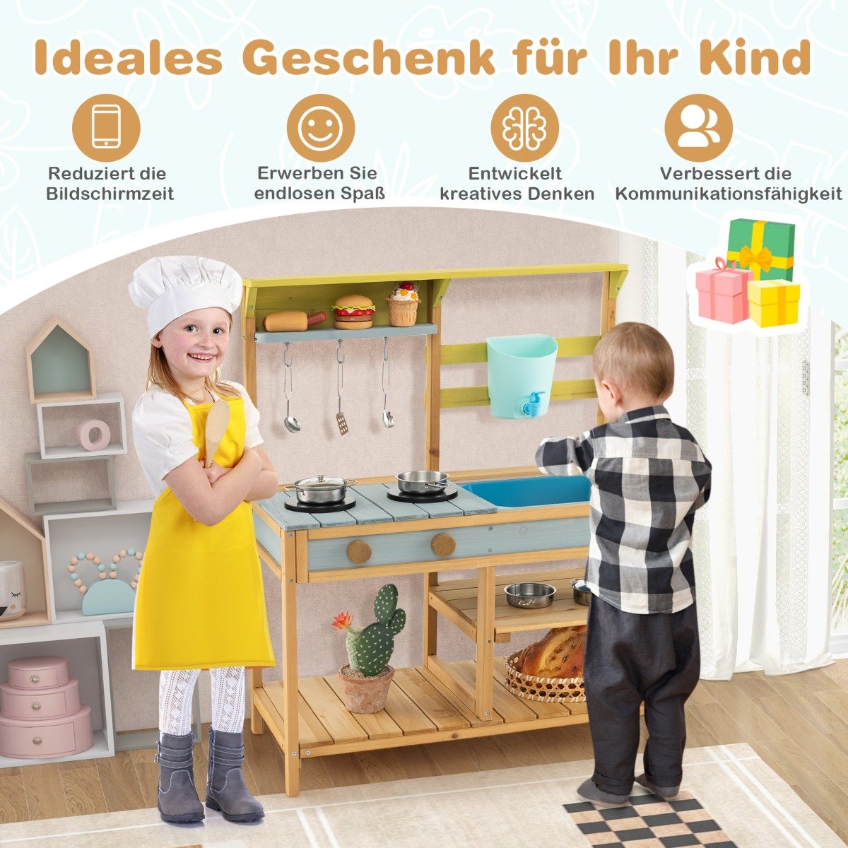 Medinė vaikų virtuvėlė su priedais (Balta + Natūrali)