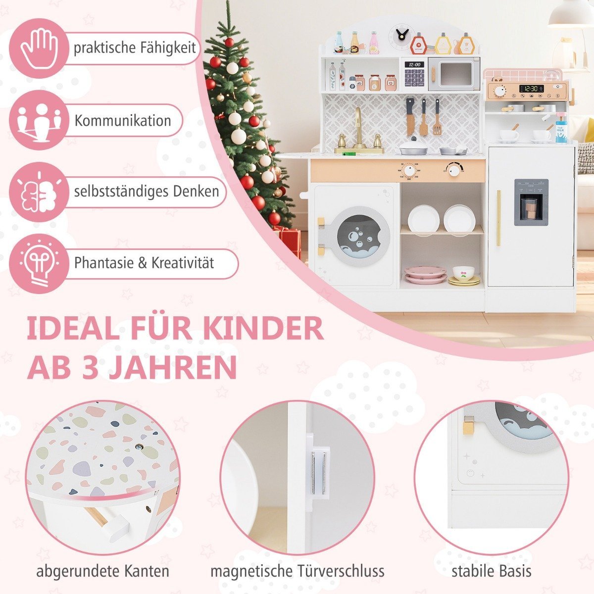 - Įvairios žaidimų zonos, tokios kaip mikrobangų krosnelė, viryklė ir skalbimo mašina, užtikrina valandų pramogų.