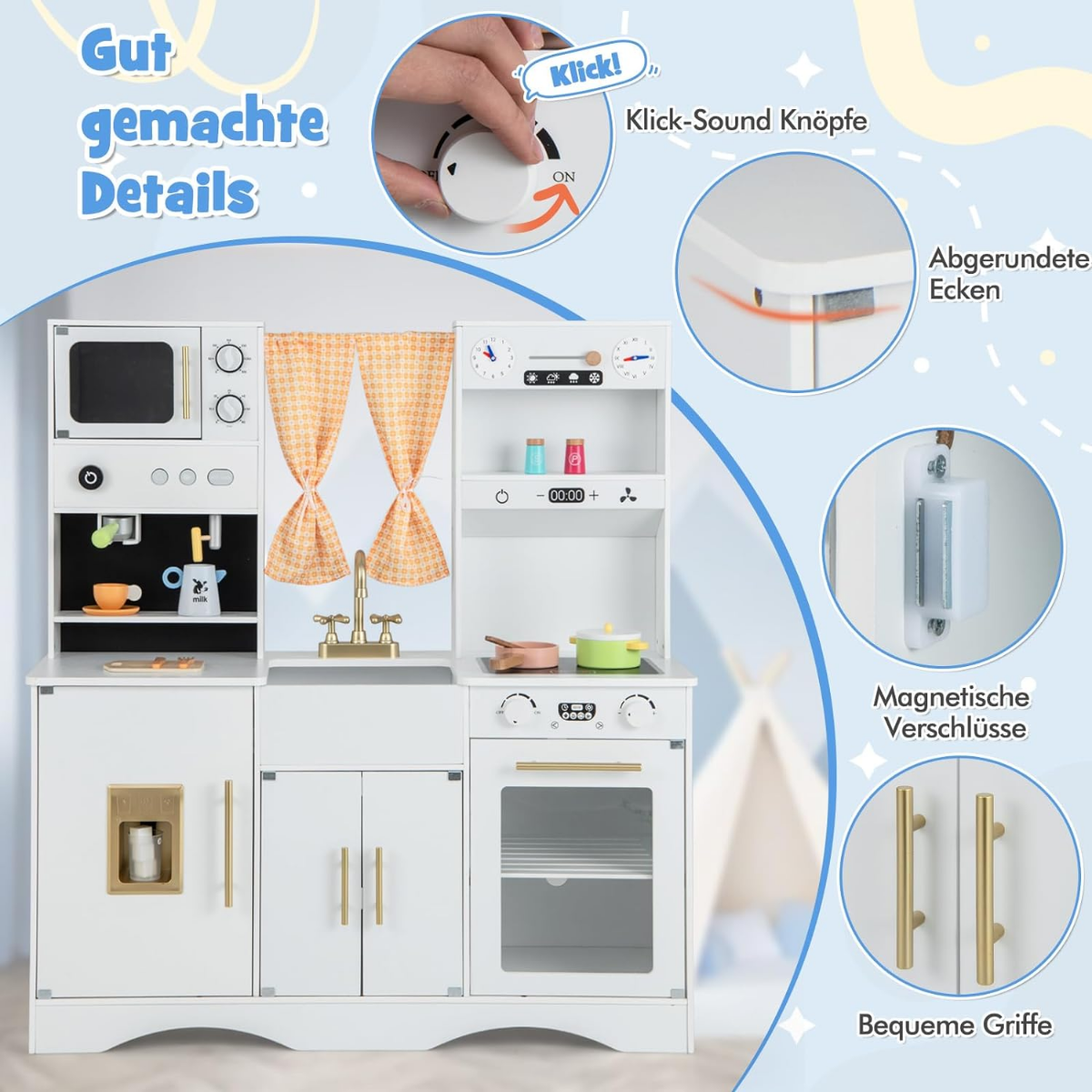 Atverkite vaiko kulinarinius talentus su mūsų medine žaidimų virtuvėle! Šis žaislas suteikia vaikams patrauklią ir įtraukiančią patirtį, leidžiančią jiems kurti maisto šedevrus. Gausus virtuvės reikmenų komplektas ir daug vietos daiktams laikyti skatina tvarkingumo įgūdžius. Puiki dovana vaikams nuo 3 metų, lavinanti jų kūrybiškumą ir praktinius įgūdžius.