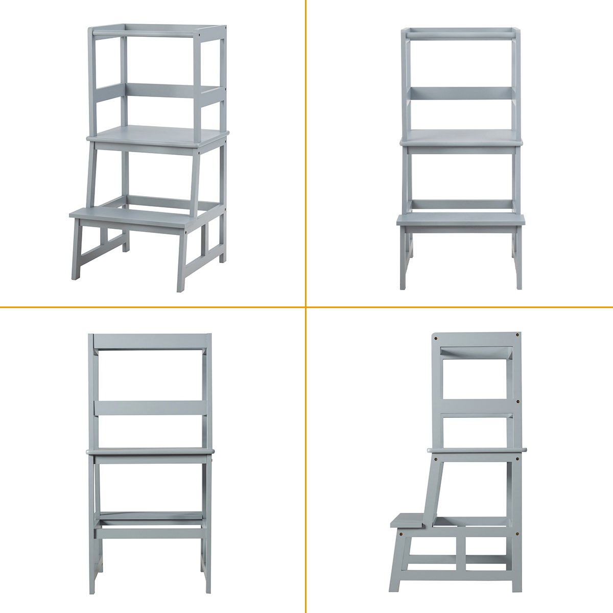 Vaikiška mokomoji taburetė iš bambuko (Pilka)