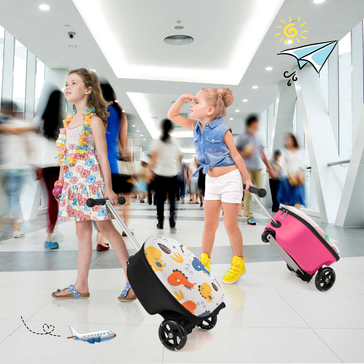 Dovanokite vaikams džiaugsmo keliaujant ar leidžiant laiką lauke su mūsų universaliu 2-in-1 vaikišku riedlenčiu! Tai ne tik patogus kelioninis lagaminas, bet ir smagi riedlentė, skirta vaikams nuo 5 metų, padedanti ugdyti organizacinius įgūdžius ir orientaciją erdvėje.