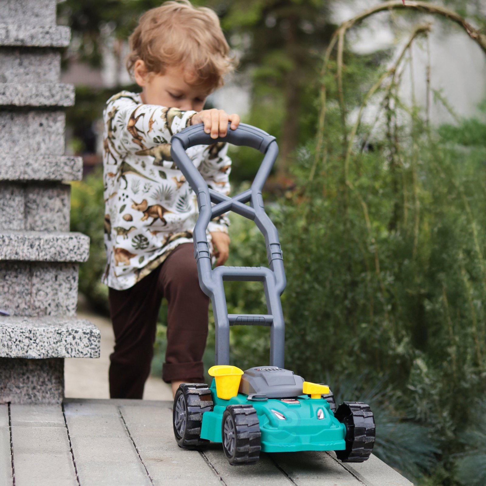 Tikroviškai atrodanti vaikiška žoliapjovė – puikus pasirinkimas mažyliams, mėgstantiems mėgdžioti suaugusiuosius ir padėti sodo darbuose. Su šviesos ir garso efektais, imituojančiais tikros žoliapjovės darbą, ji padovanos ilgas valandas įdomių ir lavinamųjų žaidimų lauke ar namuose.