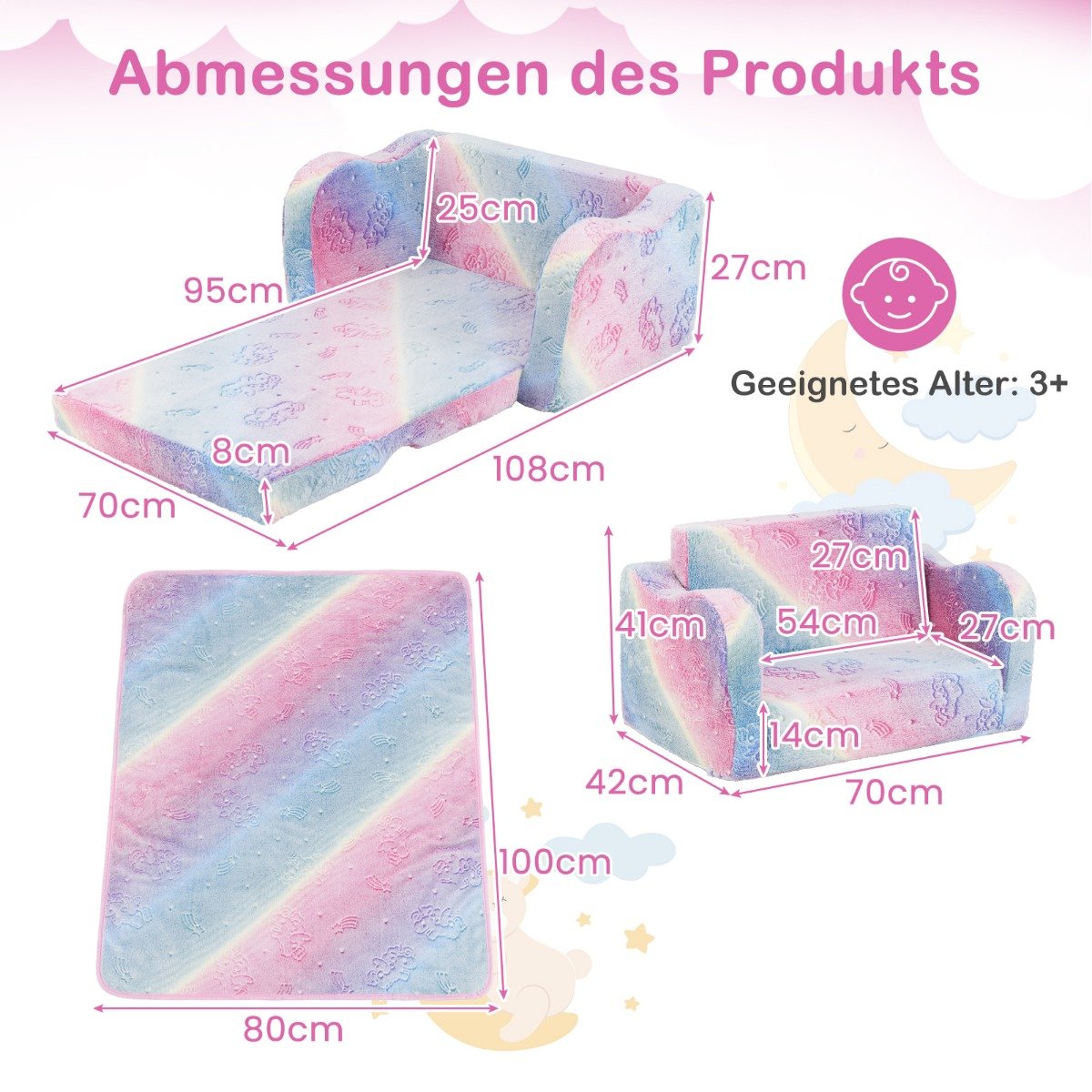 Suteikite savo mažyliui nuosavą jaukumo kampelį! Ši universali, 2-in-1 vaikiška sofa su didele antklode lengvai transformuojasi iš patogios sofutės į jaukų gultą. Ji puikiai tinka skaityti, žaisti, atsipalaiduoti ar tiesiog smagiai leisti laiką. Pagaminta iš švelnaus ir vaiko odai draugiško flanelinio audinio bei tvirto putplasčio, ji taps mėgstamiausia jūsų vaiko poilsio vieta.