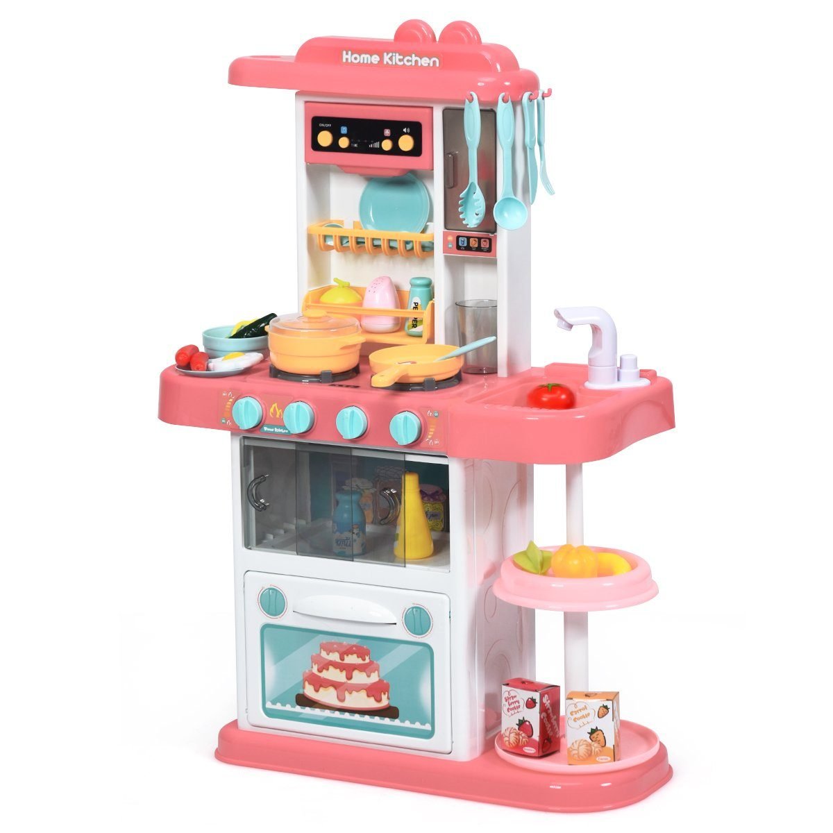 Tai žaislas, kurį jūsų vaikas tiesiog pamils! Ši realistiška vaikiška virtuvėlė turi kriauklę su veikiančiu vandens siurbliu, o viryklės rankenėlių sukimas sukuria realistiškus ugnies garsus ir šviesas. Apatinėje dalyje esančią orkaitę vaikai gali atidaryti ir nustatyti kepimo laiką, taip imituojant duonos kepimą ir lavinant vaiko praktinius įgūdžius. Daugybė laikymo spintelių padeda palaikyti tvarką. Taip pat yra kabliukų ir lentynėlių virtuvės reikmenims bei žaisliniams vaisiams ir daržovėms laikyti.
