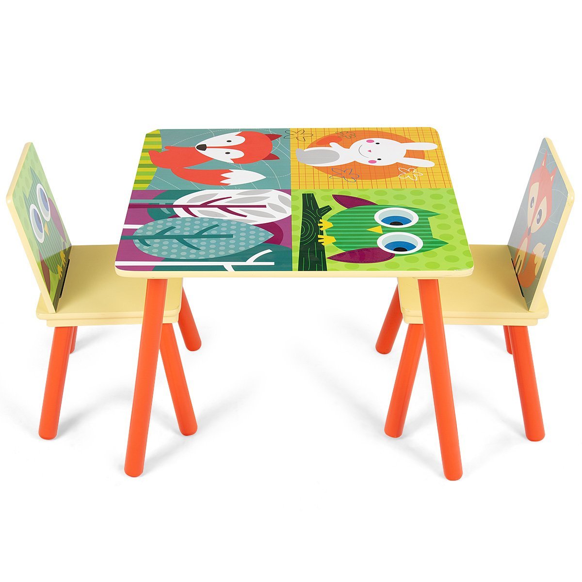 Vaikiškas 3 dalių baldų komplektas: stalas dvi kėdutės (Spalvinga)