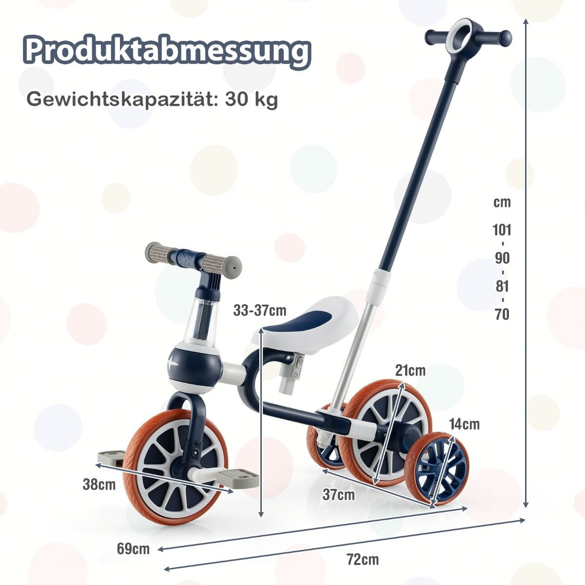 Vaikiškas 4-in-1 dviratukas su stūmimo rankena (Tamsiai mėlyna)