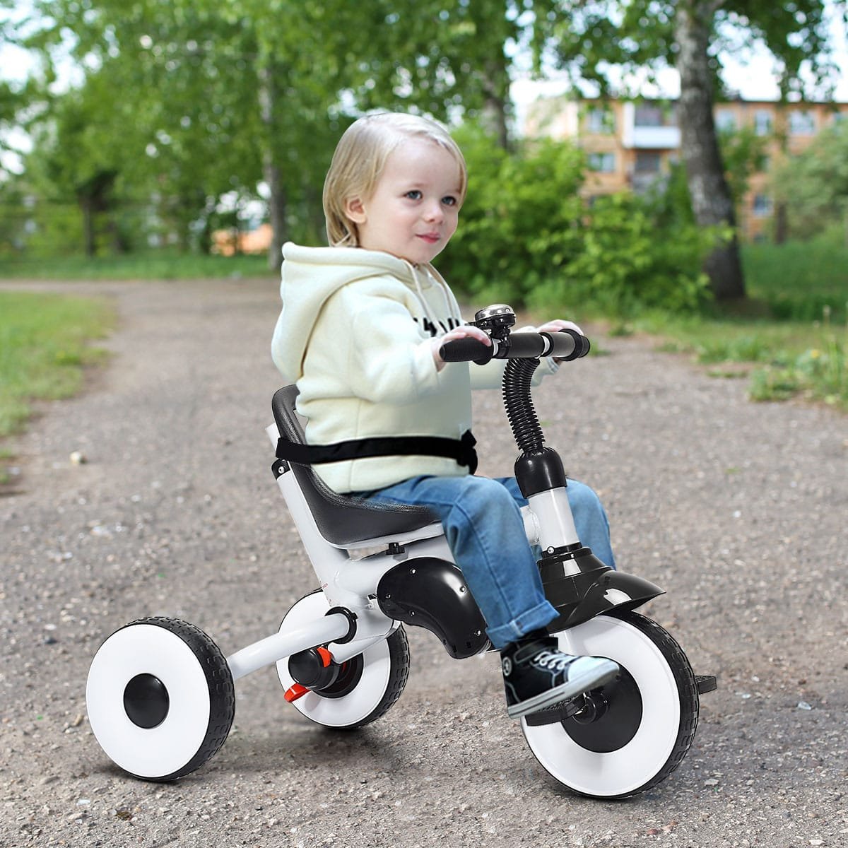 Šis universalus 4-in-1 sulankstomas triratukas sukurtas augti kartu su vaiku, tinkantis nuo 1 iki 5 metų amžiaus. Jis gali būti naudojamas kaip stumdomas vežimėlis, mokomasis triratukas ir klasikinis triratukas, suteikdamas vaikui saugią ir smagią patirtį kiekviename raidos etape.