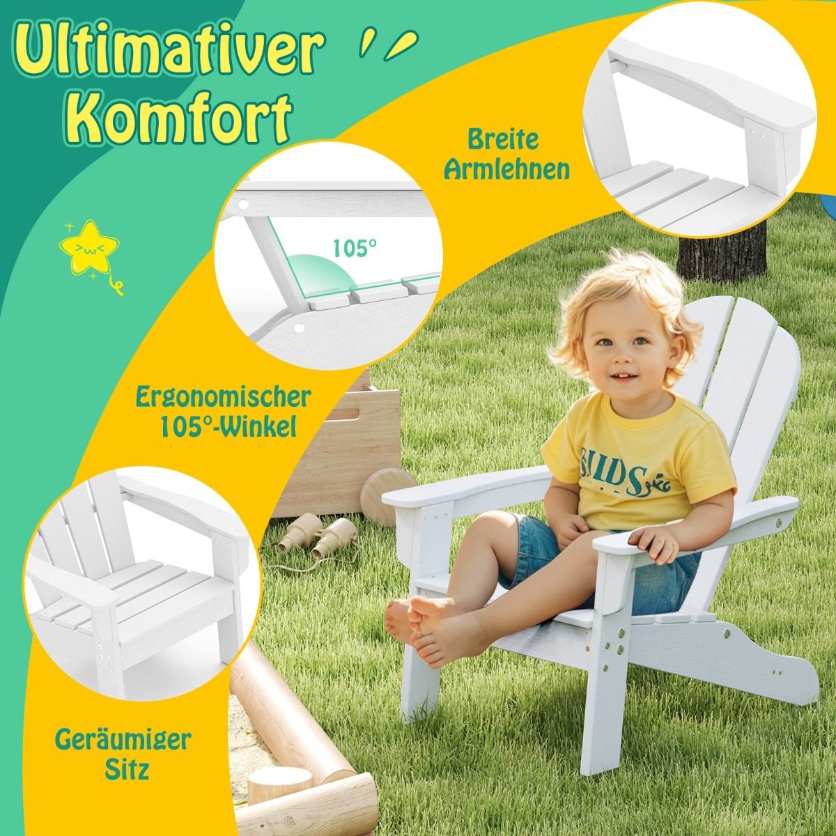 Vaikiškas „Adirondack” stalas iš HDPE su ergonomišku atlošu (Balta)