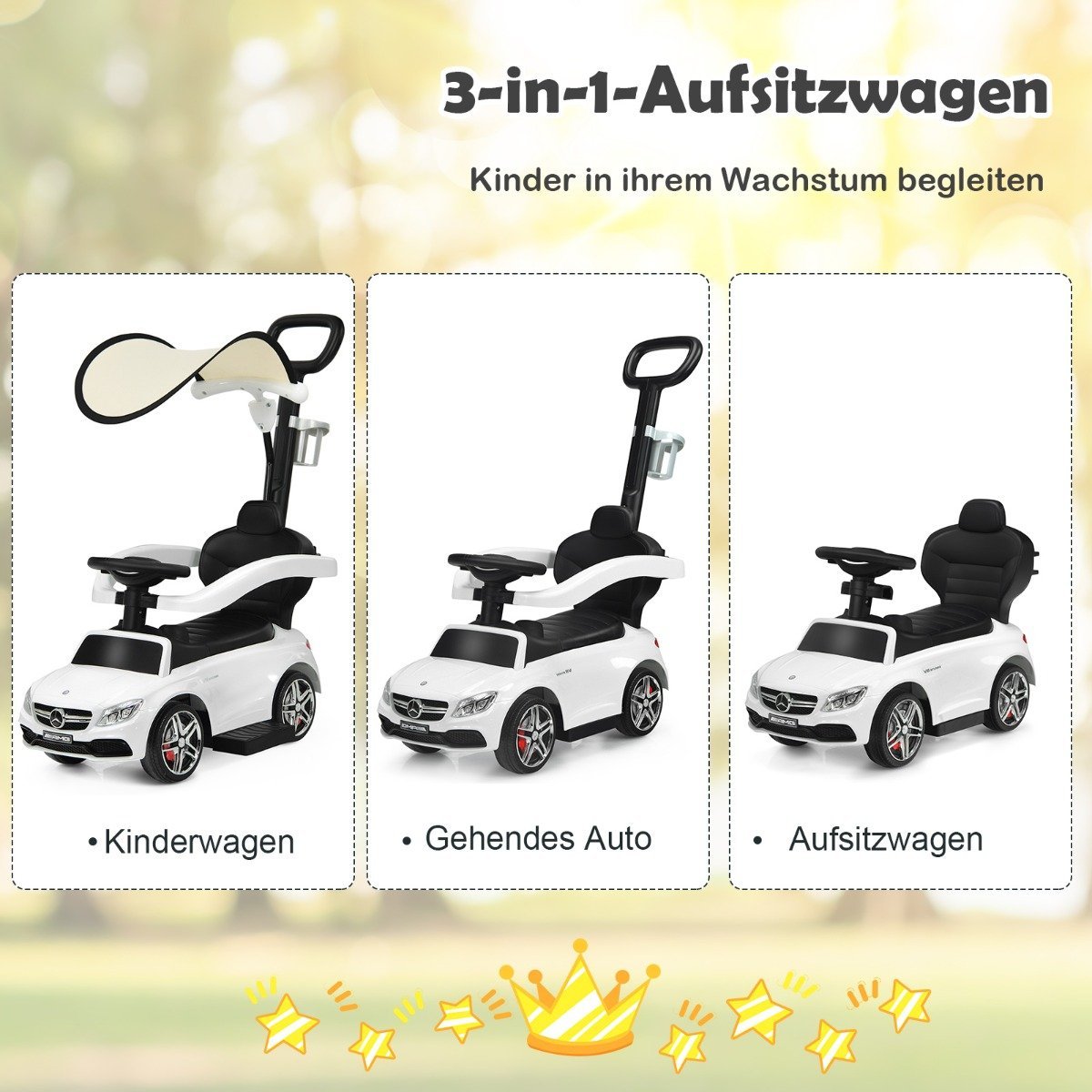 Šis 3-in-1 vaikiškas automobilis auga kartu su jūsų vaiku, suteikdamas daugybę pramogų ir saugumo. Pagamintas iš aukščiausios kokybės, vaikiškam naudojimui tinkamų medžiagų, jis užtikrina ilgaamžiškumą ir komfortą.