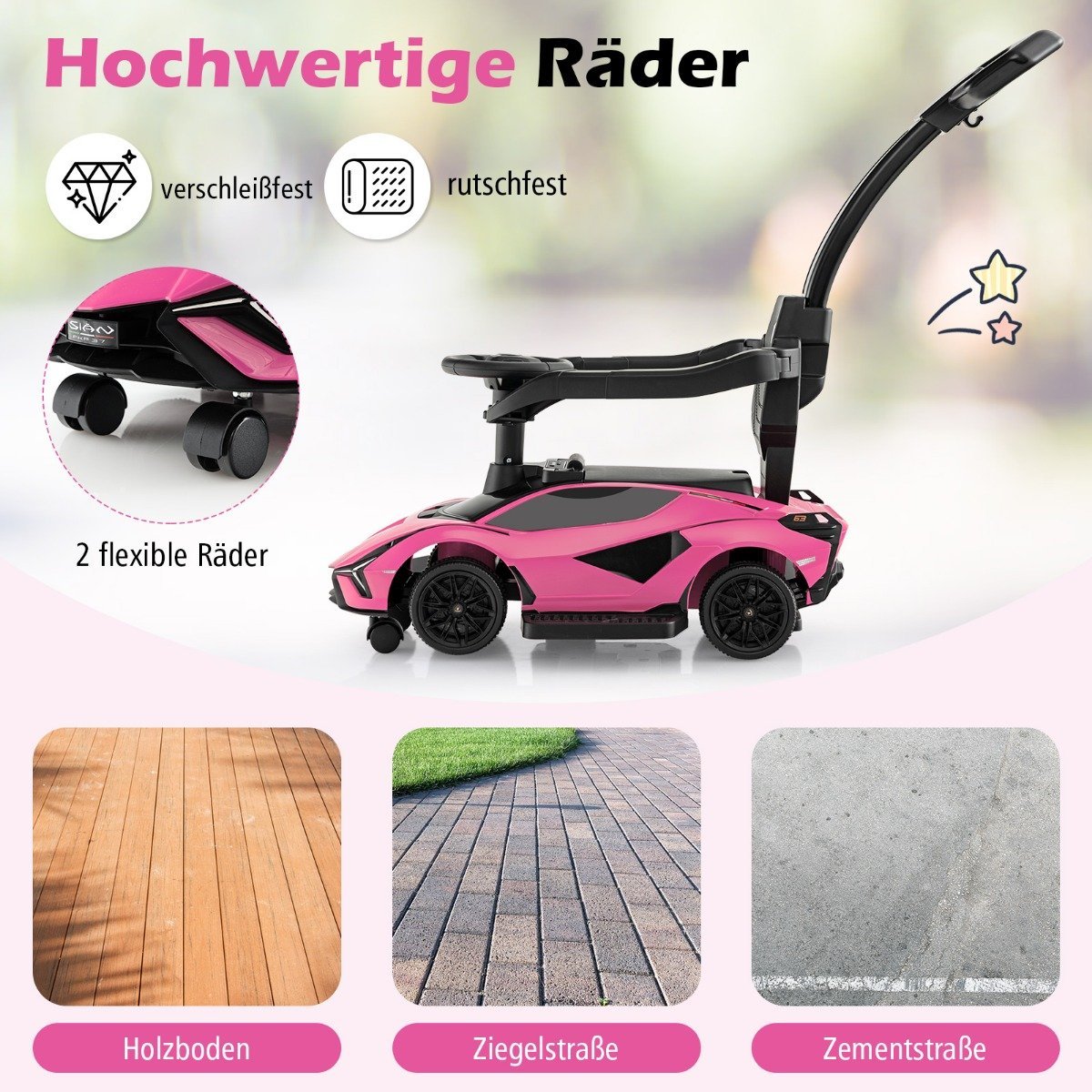 - 1 x vaikiškas automobilis su stūmimo rankena