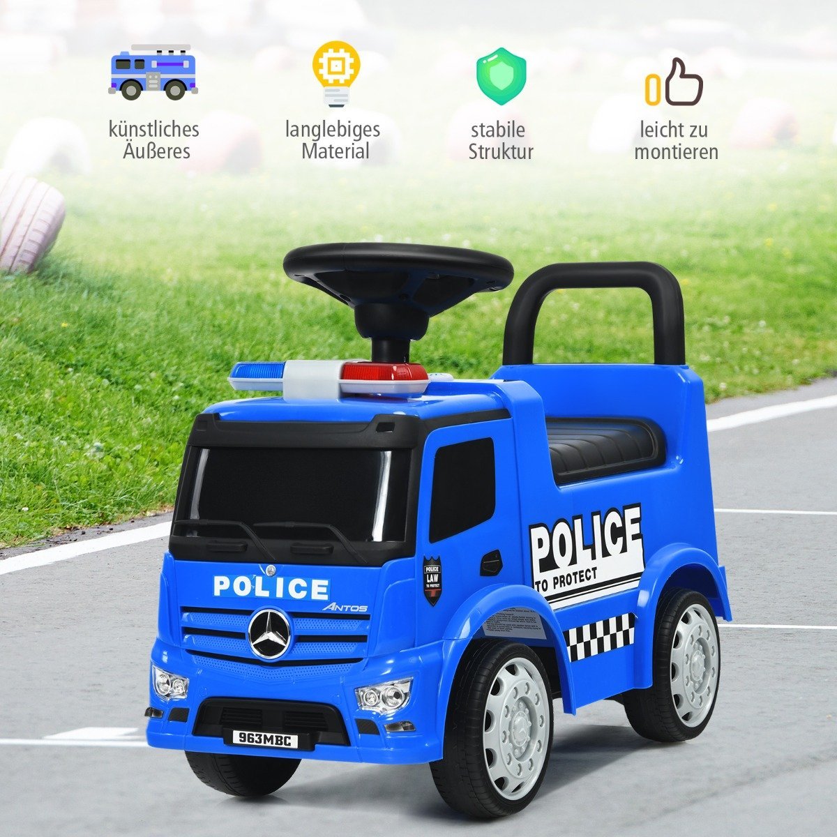 • Interaktyvios garso funkcijos: paspaudus mygtukus, girdimas signalas, sirena ir švilpukas, suteikiantys papildomo linksmo vairavimo potyrio.